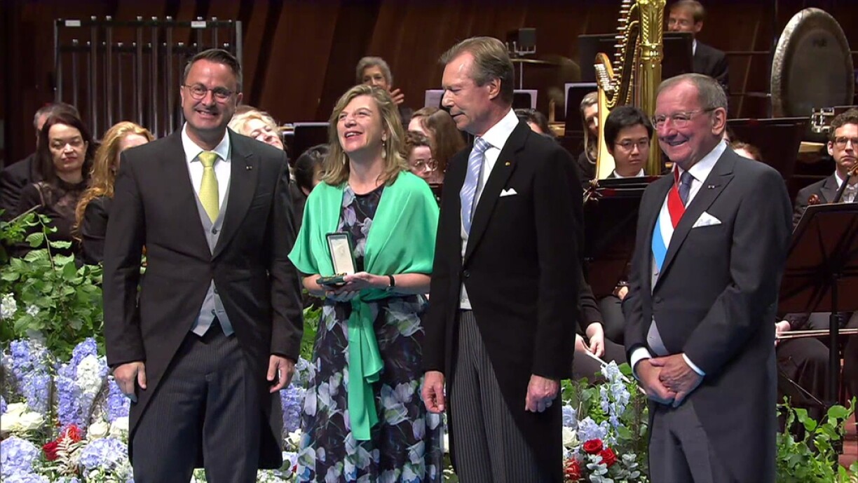 Monique Mille is best known for her work in theatre and cabaret, as well as her volunteer work with seniors in CIPA Howald. She represents the many volunteers who spend their time helping at retirement and care homes. “It is a commitment to a society where no one is forgotten, where everyone has a place and people are there for one another,” said the Prime Minister. Mille was awarded the title of Commander of the Order of the Oak Crown by the Grand Duke on behalf of all volunteers.