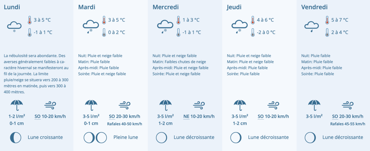 The meteorological service estimates that the snow line will be between 200 and 300 metres in the morning and between 300 and 400 metres in the afternoon. This suggests that it will be mainly the northern municipalities that will experience snowfall.