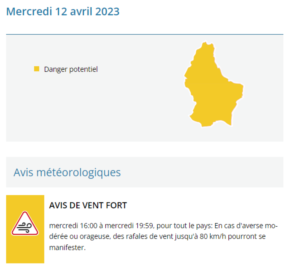 According to Météolux, “the possibility of rainfall will persist until the evening. Moderate to thundery rainfall, accompanied locally by sleet and a strong wind, is expected, especially towards the end of the afternoon and early evening. The rain will subside thereafter.”