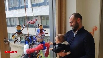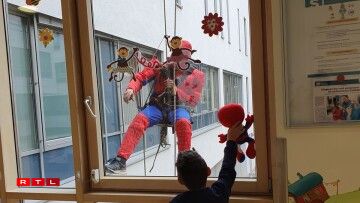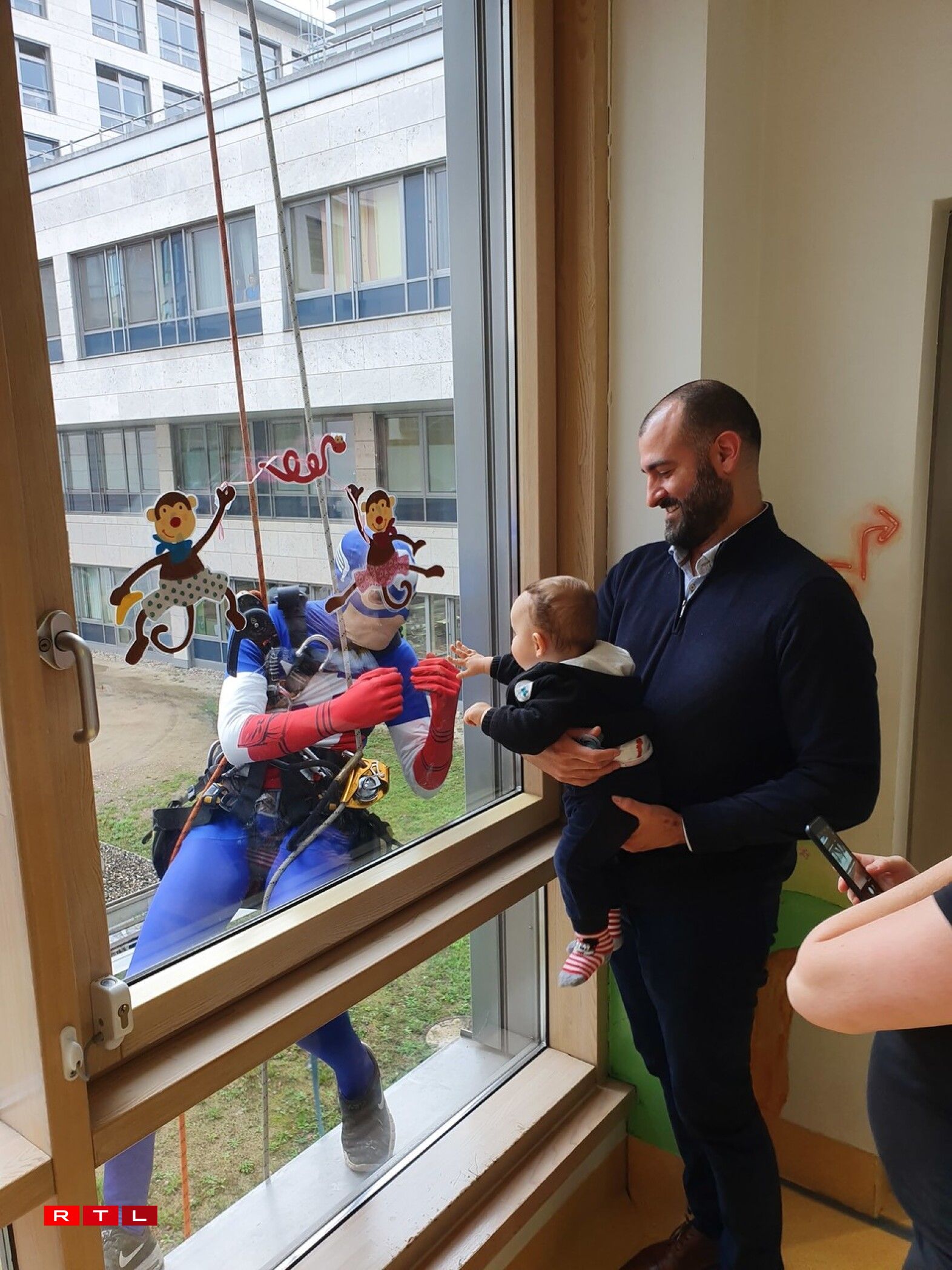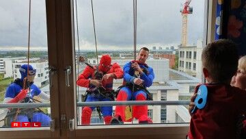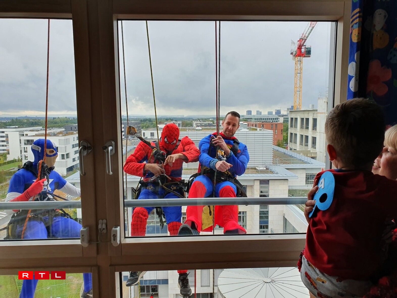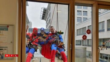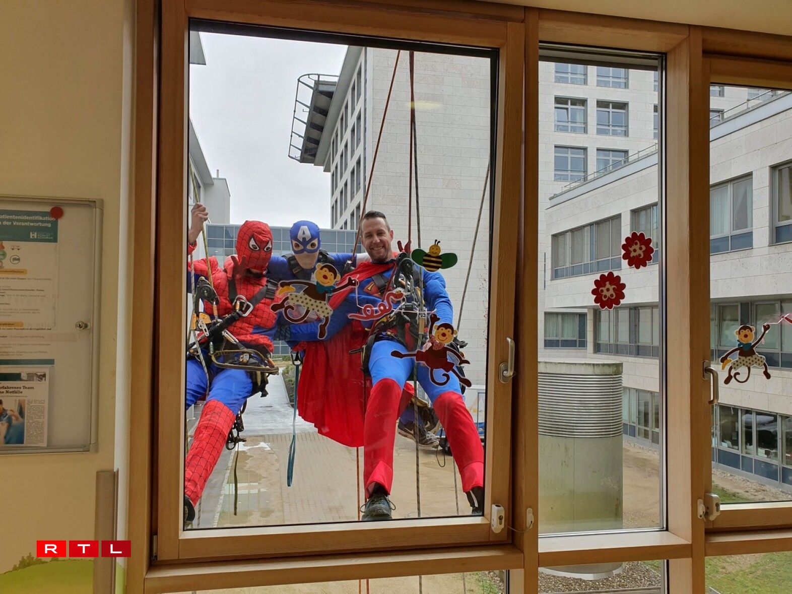 Spider-Man, Captain America and Superman made a spectacular appearance at the windows of the hospital.