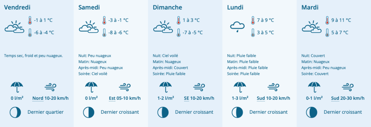 In the meantime, the forecast until Sunday will remain unchanged: very cold temperatures in the mornings, down to -8°C on Saturday, and then slightly below 0°C in the afternoon.