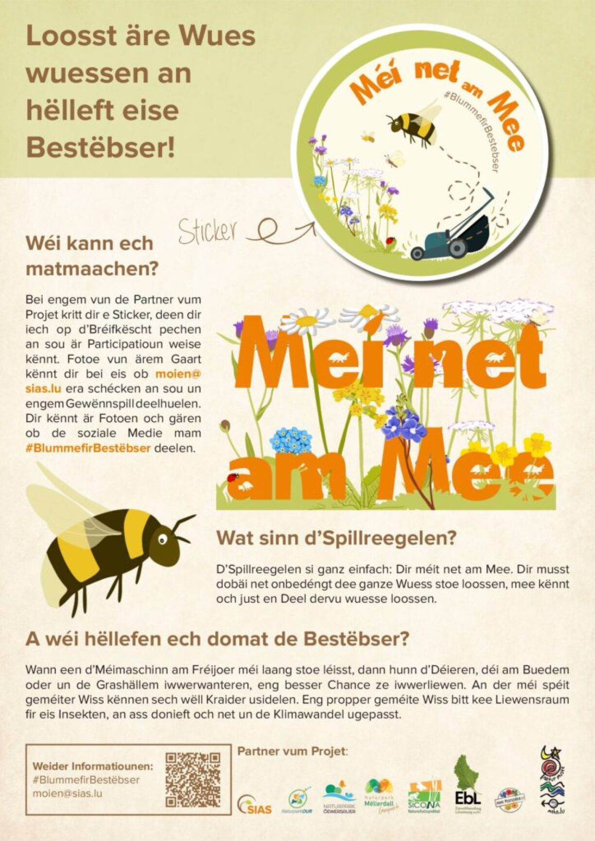 Citizens are encouraged to join the effort. For example, the intermunicipal syndicate SIAS has invited people to display a sticker on their letterbox showing they’re supporting pollinators. Residents can send photos of their garden to moien@sias.lu to take part in a prize draw.