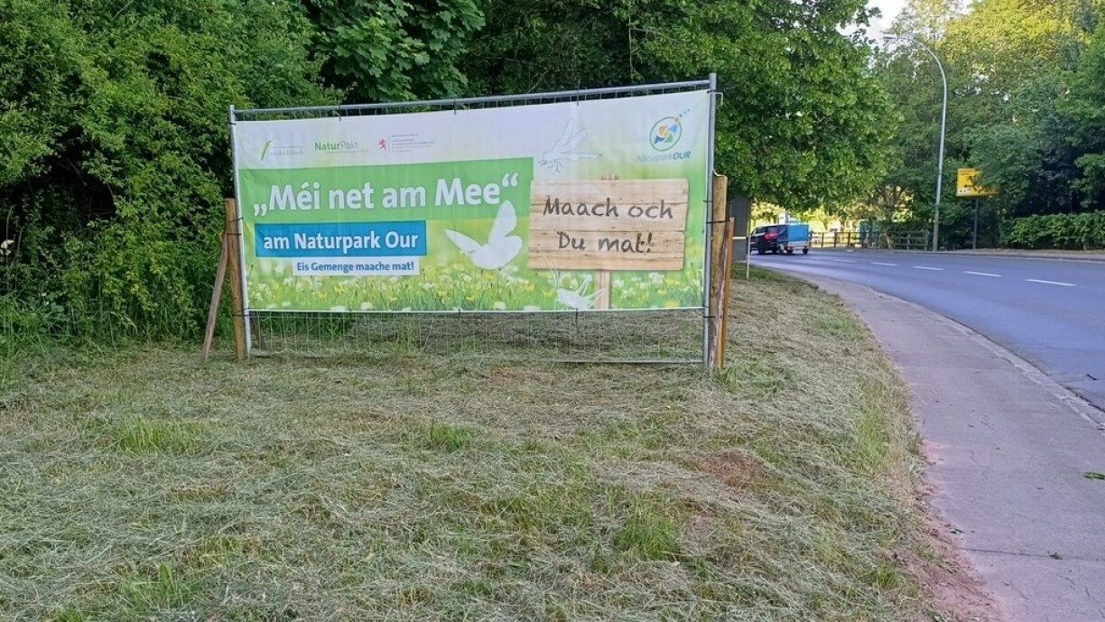The sign explains that this is an initiative supported by municipalities involved in the “Naturpakt”, a national programme encouraging biodiversity-friendly land management. However, the sign is located at the Bleesbruck roundabout, which appears to fall within the municipality of Bettendorf, a commune that is not currently part of the Naturpakt.