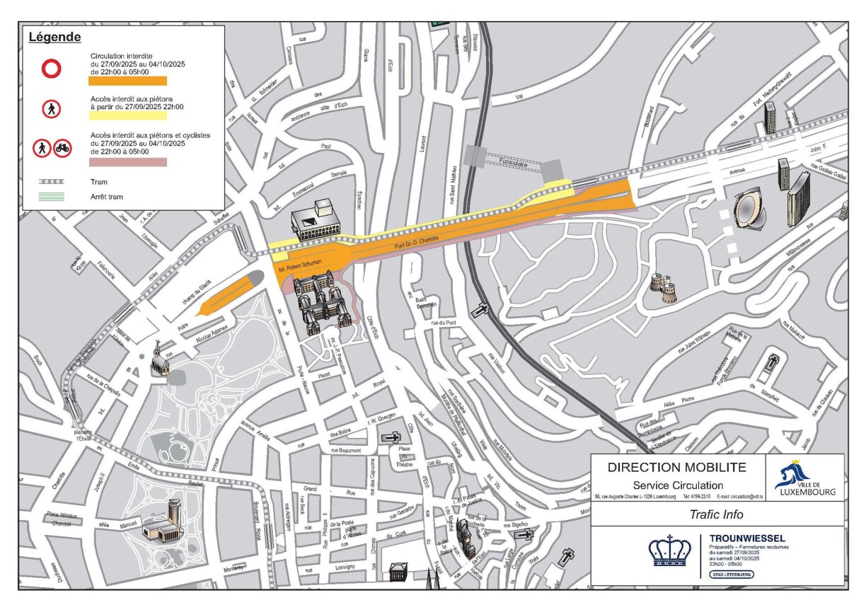 In preparation for the festivities surrounding the change of throne, Luxembourg City will implement traffic restrictions beginning Friday. These measures extend beyond the limitations already in place near the Grand Duchess Charlotte Bridge since 27 September.