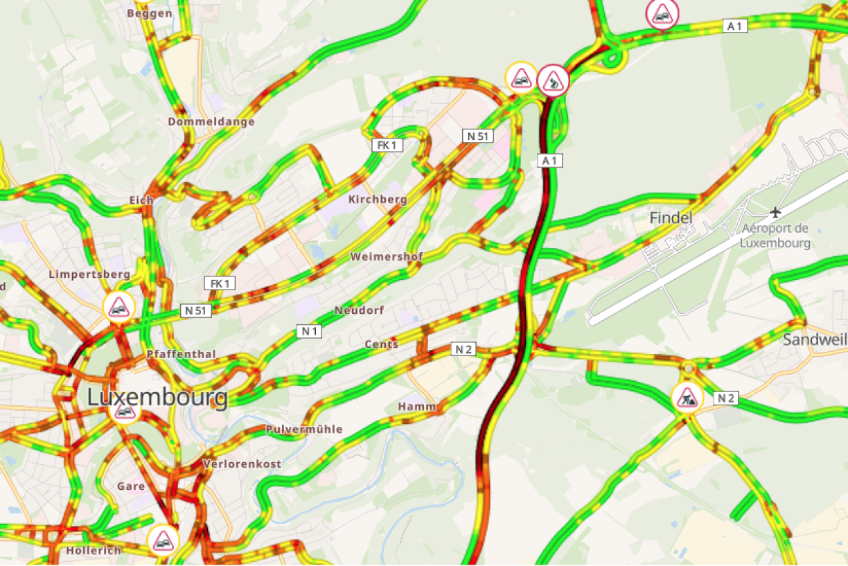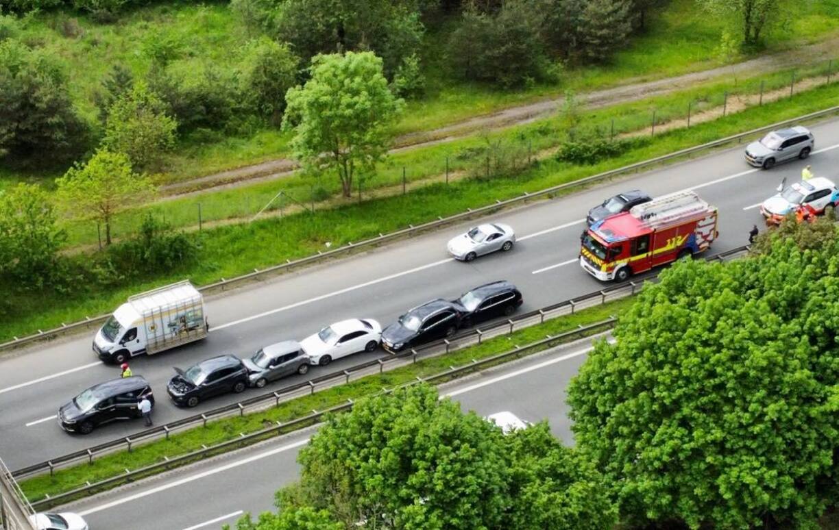 The crash took place around a kilometre from the Sandweiler/Hamm slip road, with six cars piling up on the passing lane heading towards Kirchberg and the Croix de Gasperich.