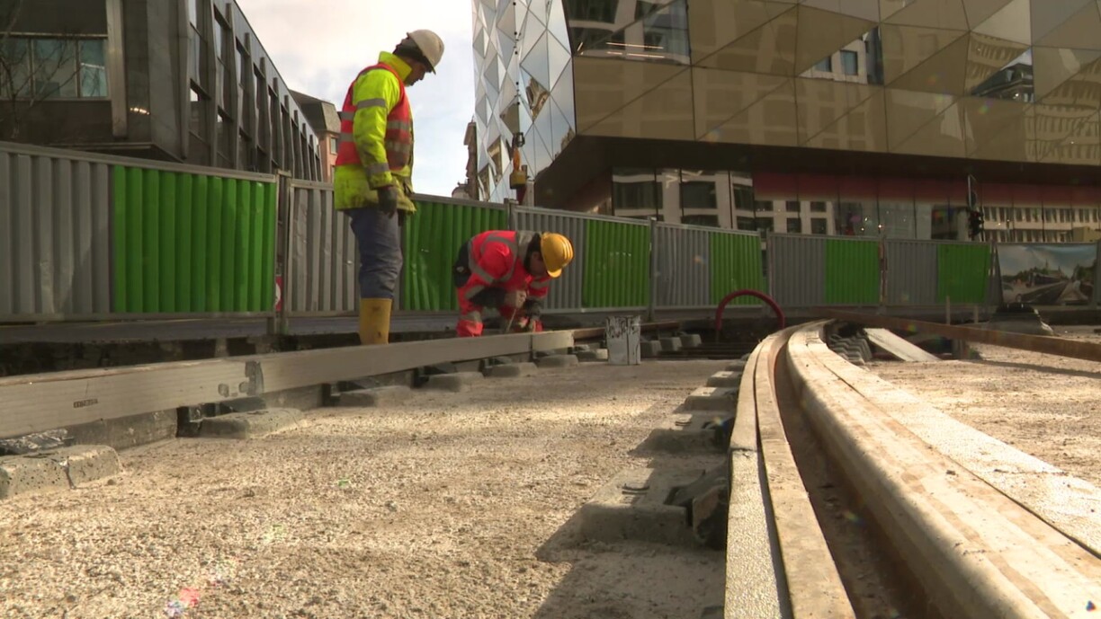 On Friday 21 February, workers fused the individual rails together. One tram rail is around 18 metres long and weighs a tonne.
