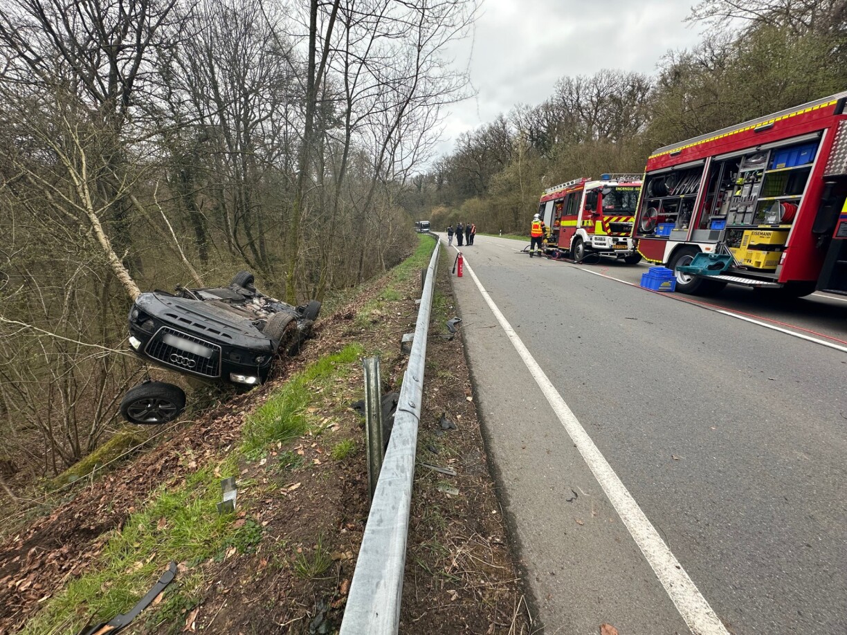 Emergency services responded to the incident along the Burmerange-Schengen route after the vehicle struck barriers, rolled multiple times, and came to rest against a tree below the roadway.