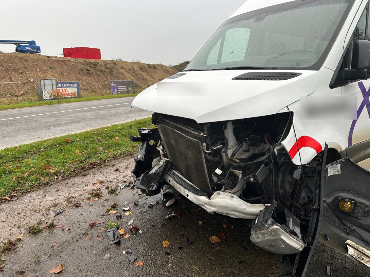 The collision occurred around 10am in Roost, involving a minibus and a car. Both vehicles sustained extensive damage.