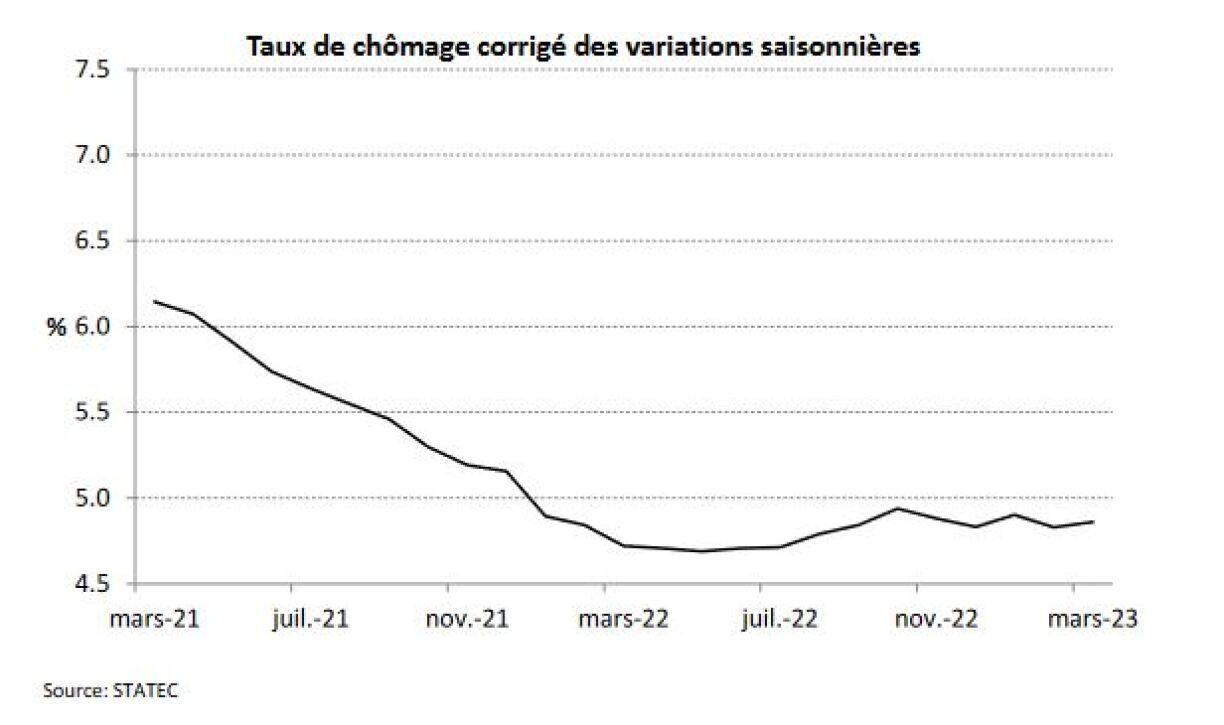 When compared to February’s report, the data shows a slight decrease of 318 people, or 2% - however, this no longer applies when taking seasonal variations into account. Once the variations are accounted for, the data shows an increase from 4.8% to 4.9% between February and March 2023.