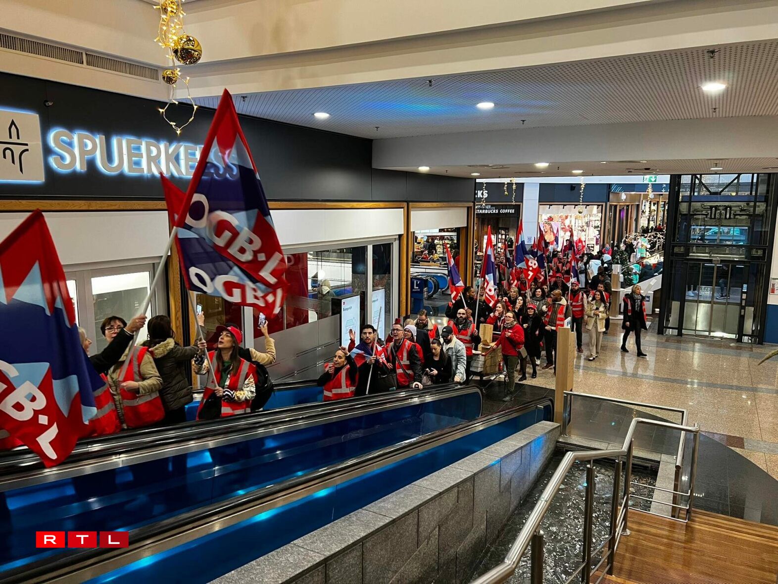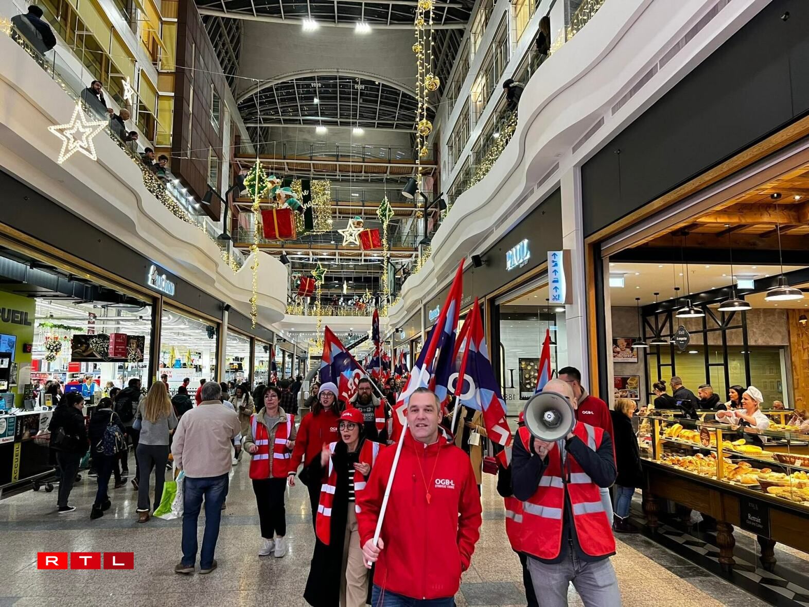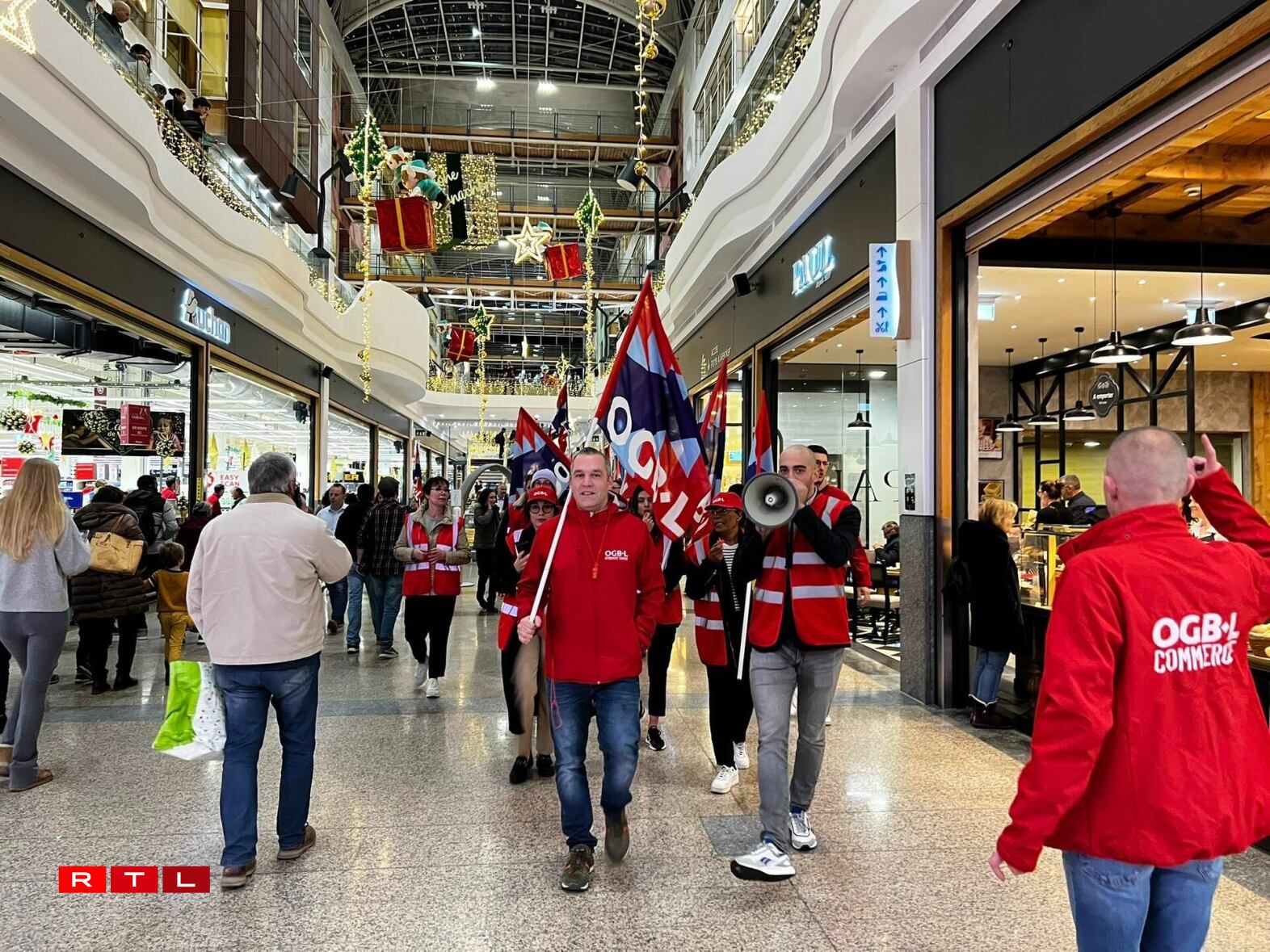 While the protest was taking place, Angel provided additional context on the controversy surrounding the monthly payment. “If they (Auchan and Nhoods, the company that manages the shopping centre) want to ask the stores to pay, they should do so through the rent,” he explained to our colleagues from RTL 5 Minutes. He added that the OGBL will be powerless to prevent these costs from being passed on to employees in the case of small shops that are not unionised.