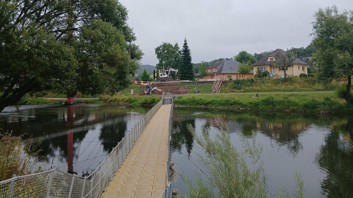 Preparation work is currently underway on both banks of the Sûre. However, due to the collective construction holiday, work will be interrupted again, so it will likely take until mid-September for the new temporary bridge to open. At that point, the current pontoon bridge will be removed.