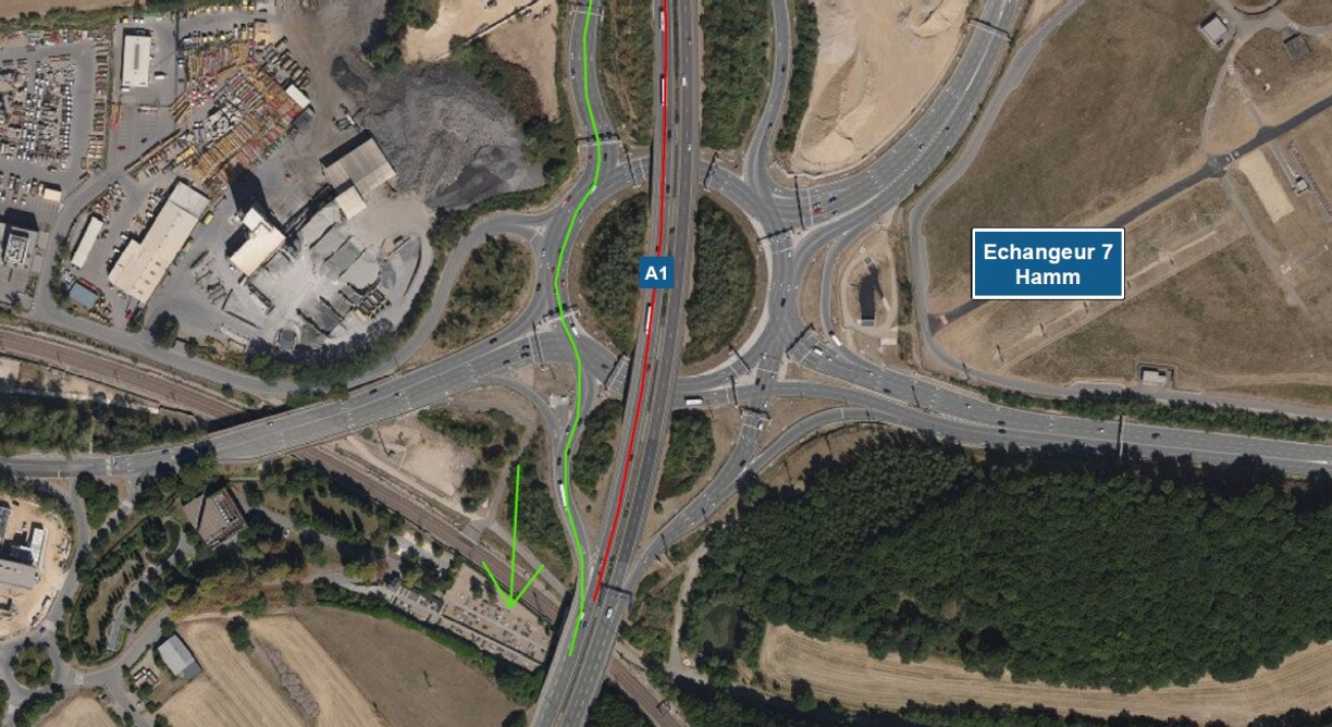 Therefore, the A1 motorway in the direction of Gasperich will be closed to traffic between the access and exit to Hamm during the repair works.