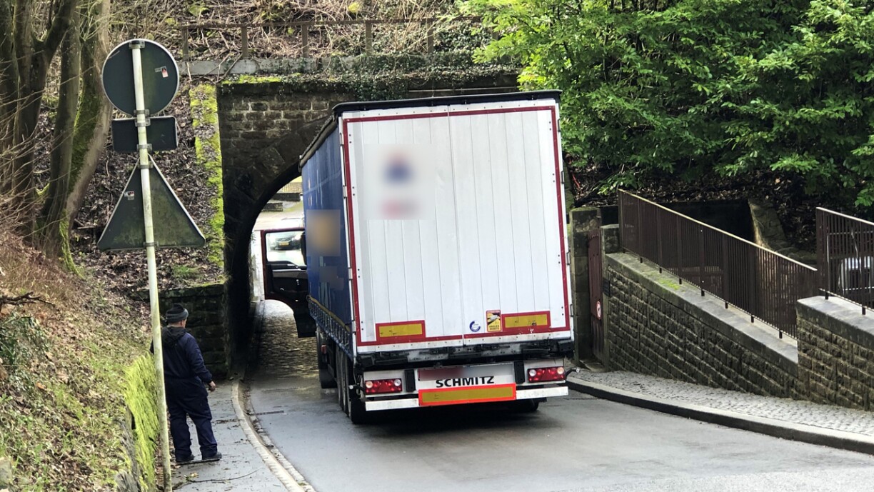 At the time of writing, police had closed the road to traffic while they attempted to resolve the issue. The lorry will likely have to attempt a reverse manoeuvre towards Kirchberg.