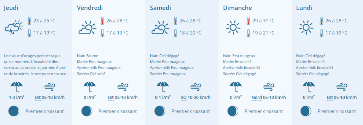 On Saturday morning, temperatures are likely to be between 18 and 20°C. They will remain between 26 and 28°C in the afternoon before rising again the following day.