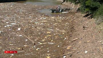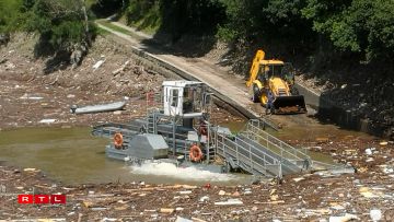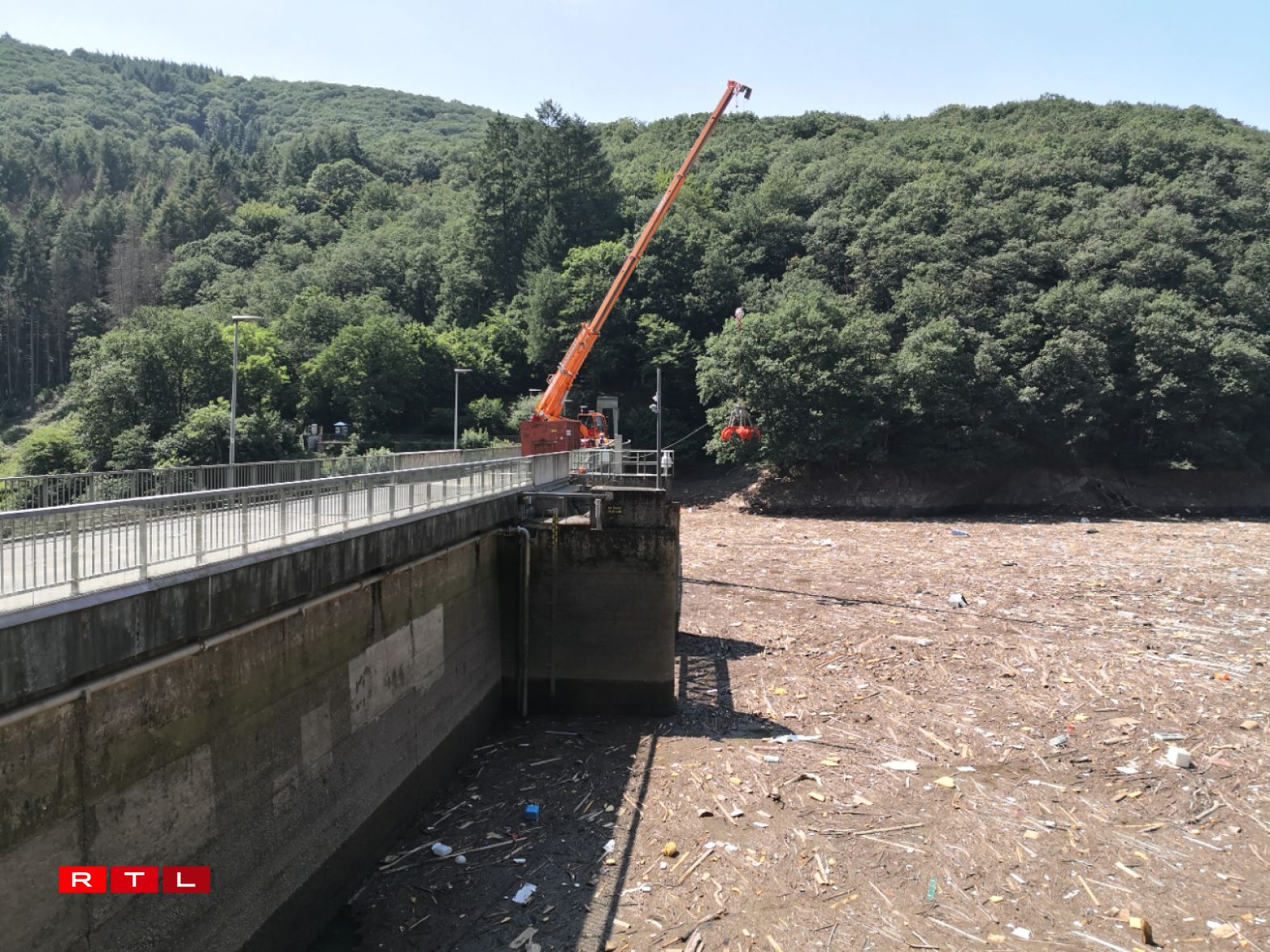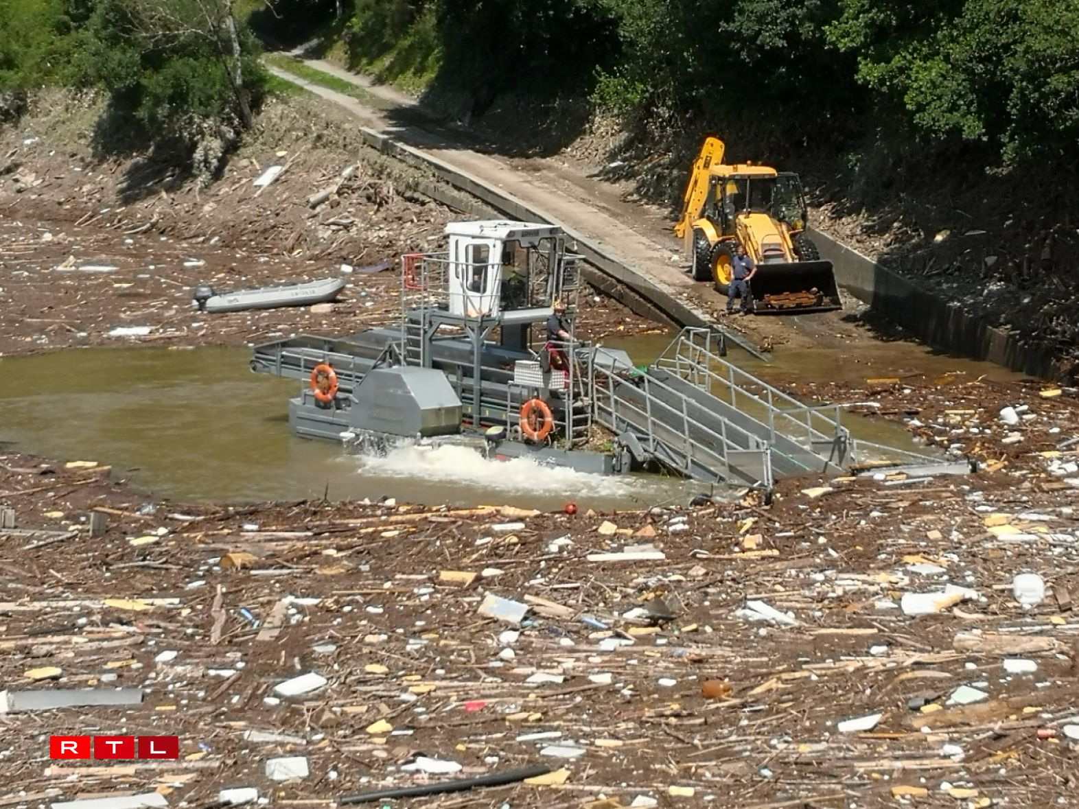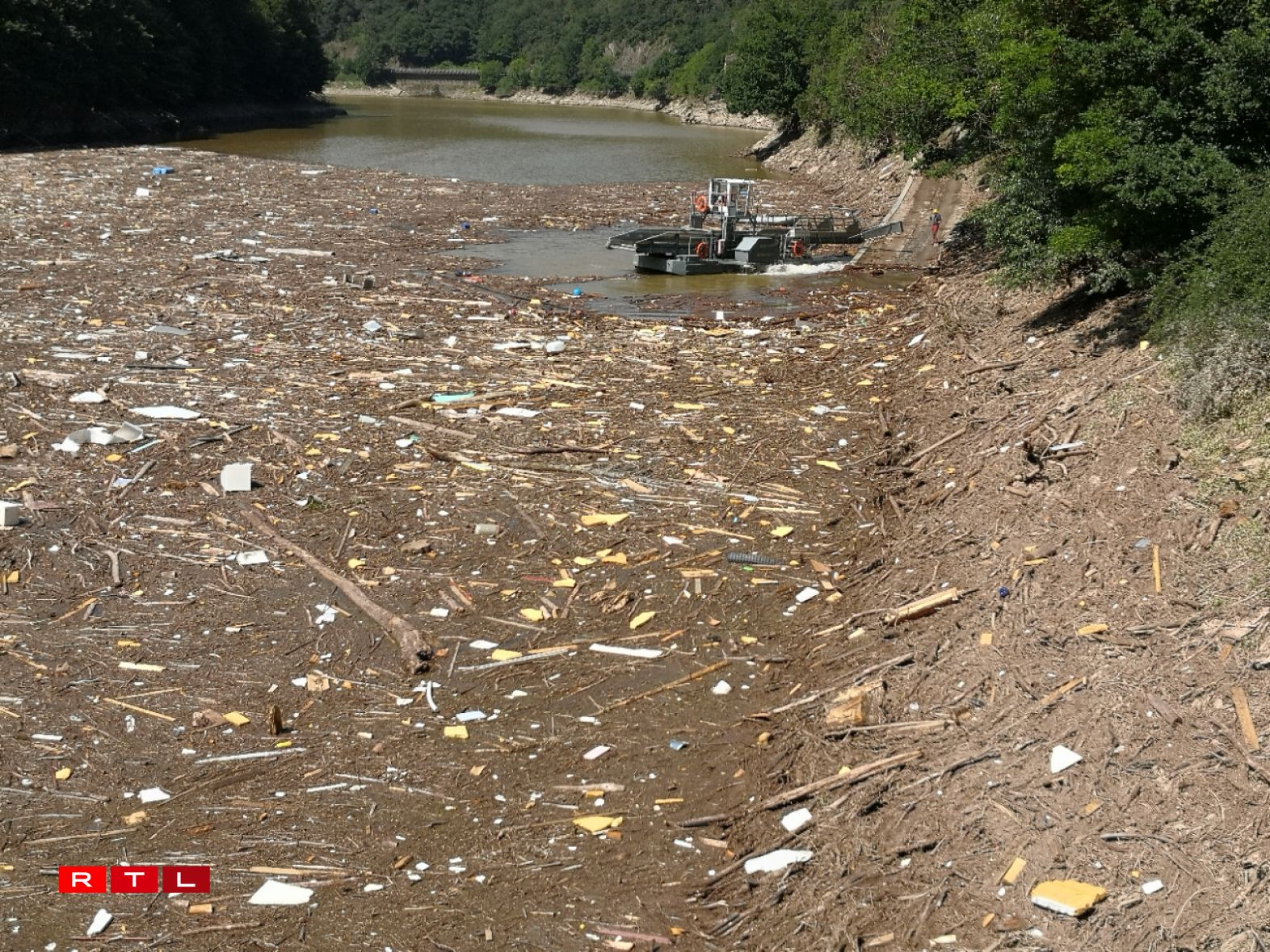 Clearing operations at the top of the dam started on Monday. The river has brought masses of waste from Belgium that now need to be removed step by step, including trees and caravans. Due to the consistent pressure from the Our, waste is being compressed into a compact mass. In some areas, this mass has a water-depth of one metre.