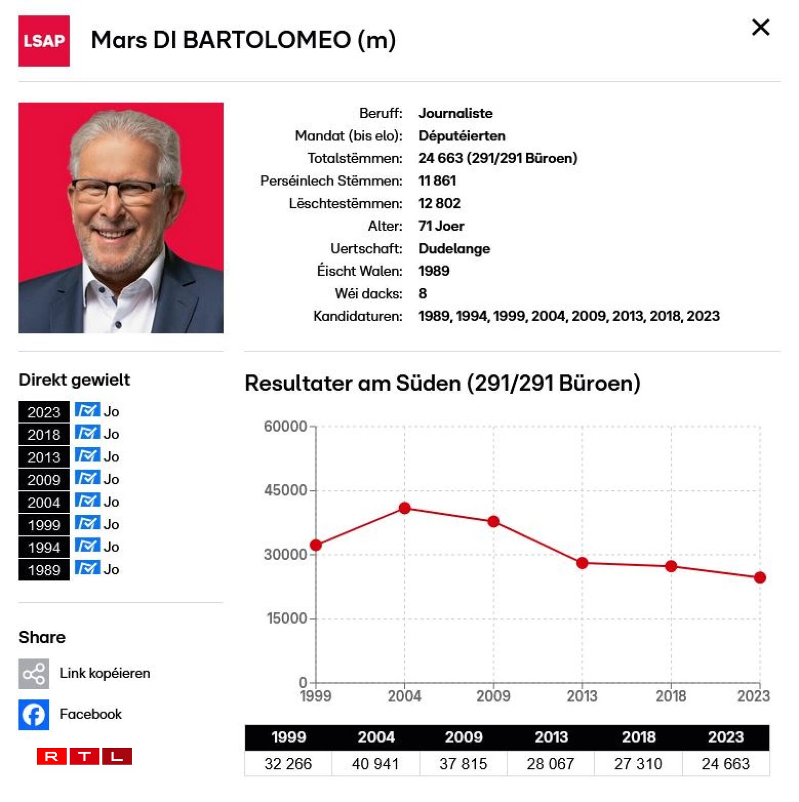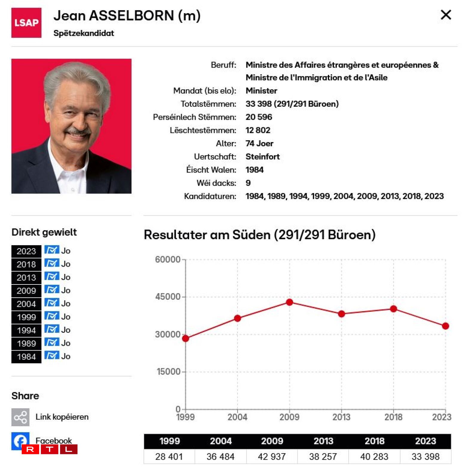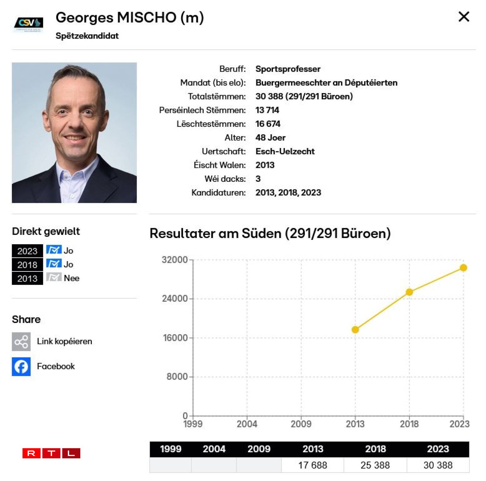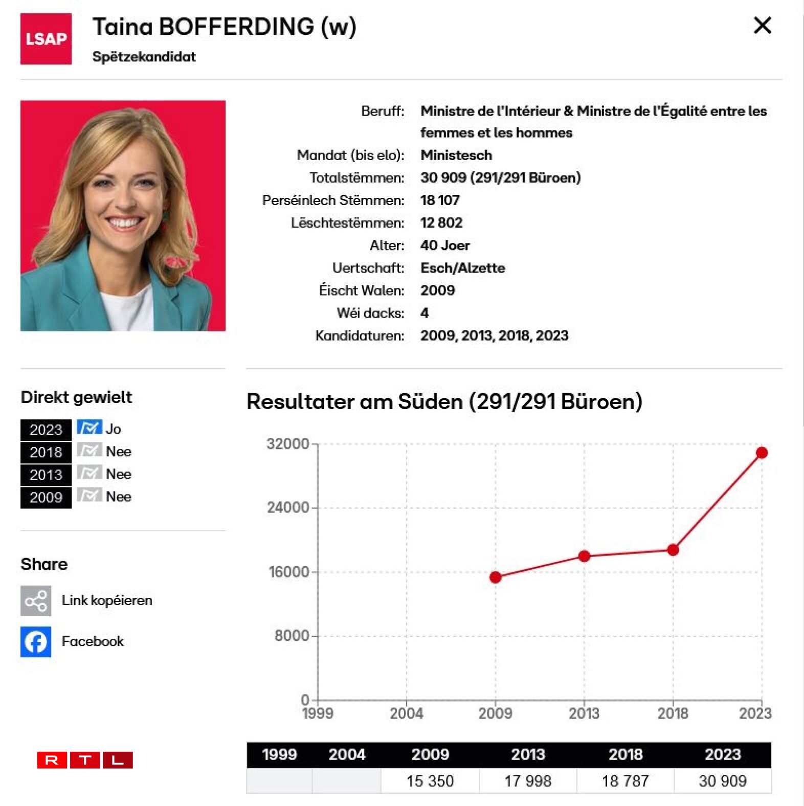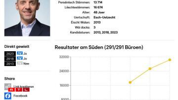 In the southern election district, the LSAP’s Jean Asselborn would still be at the top. But in this scenario, he would be closely followed by party colleague Taina Bofferding, who received a total of 18,107 personal votes. Rounding out the top three would be Gilles Roth from the CSV. Georges Mischo (CSV) and Mars Di Bartolomeo (LSAP) would be ranked fourth and fifth respectively.