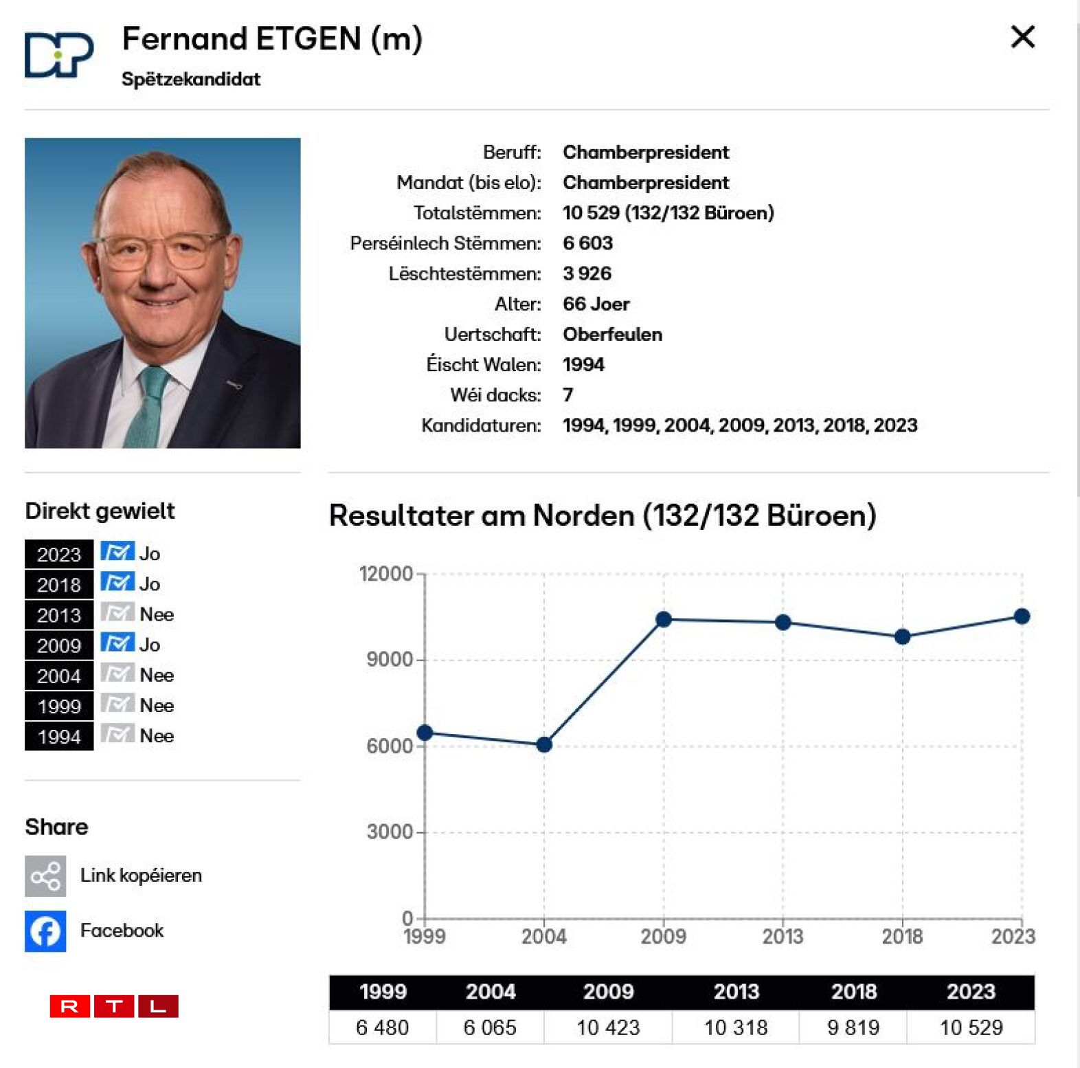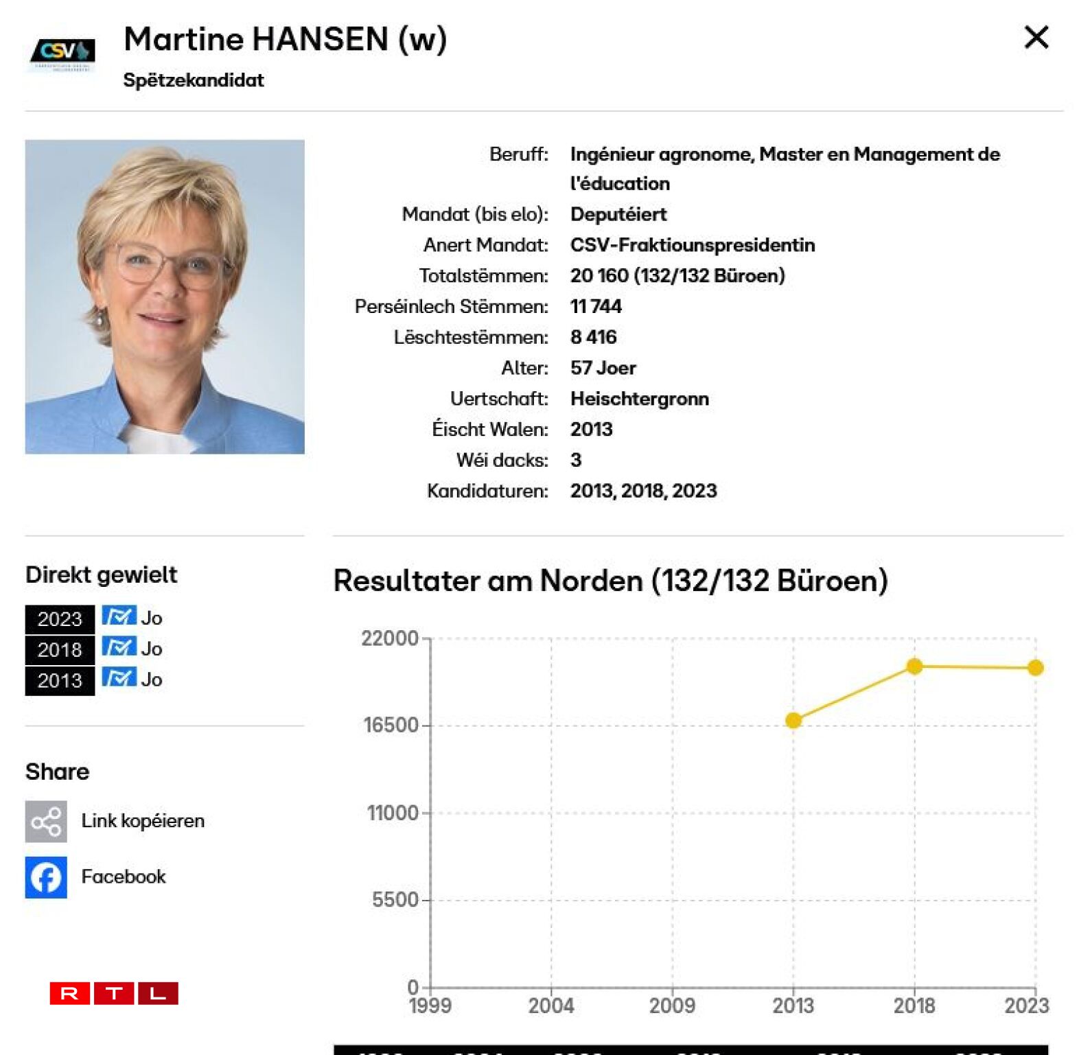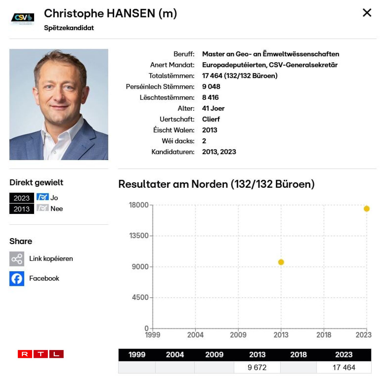 In the northern district, the top two stay the same. Martine Hansen and Christophe Hansen from the CSV both received the most personal votes in the district, with 11,744 votes and 9,048 votes respectively. In this ranking they are however followed by two DP politicians: Fernand Etgen and André Bauler. Rounding out the top 5 of most personal vote is another CSV politician Charel Weiler.