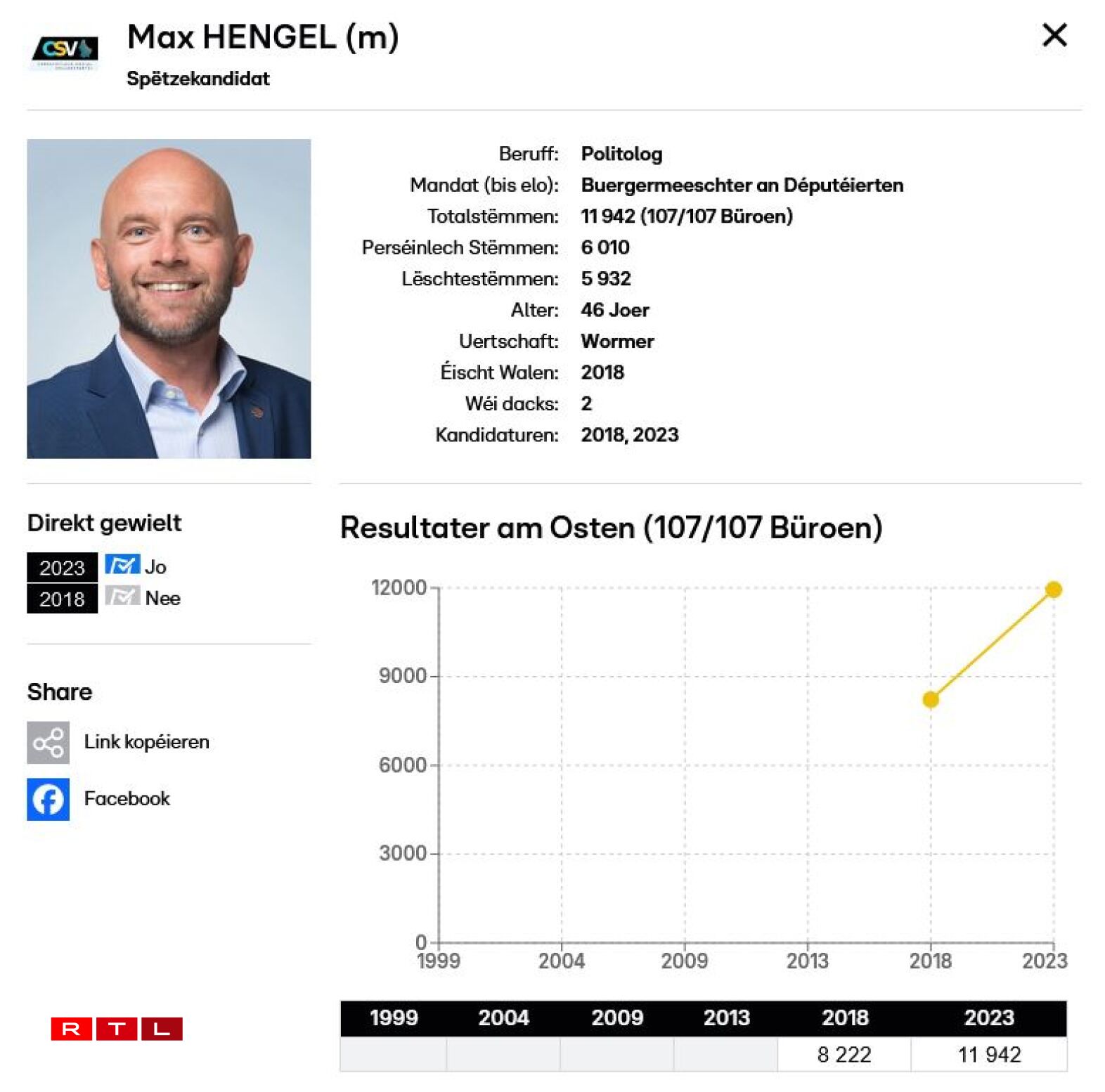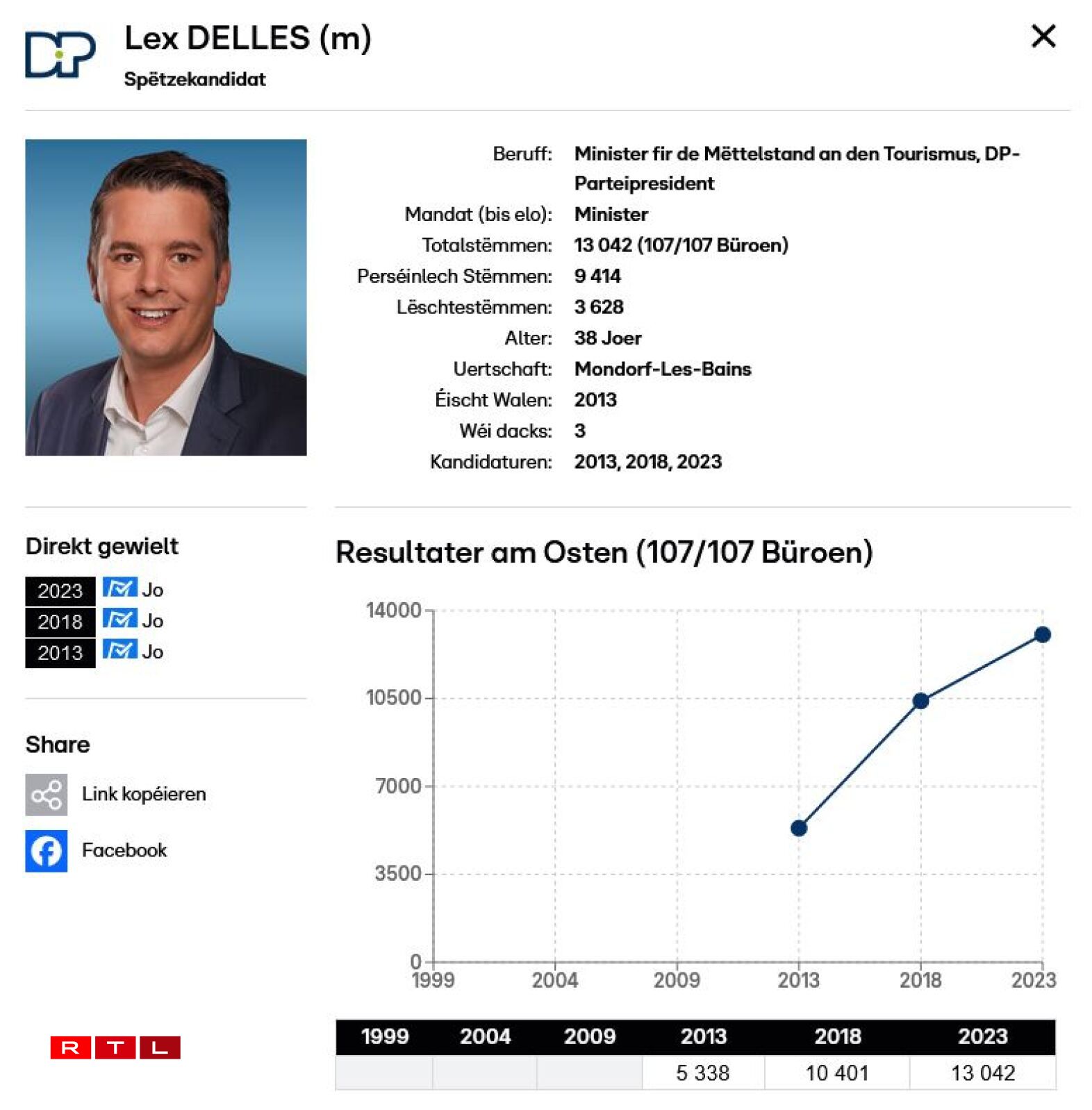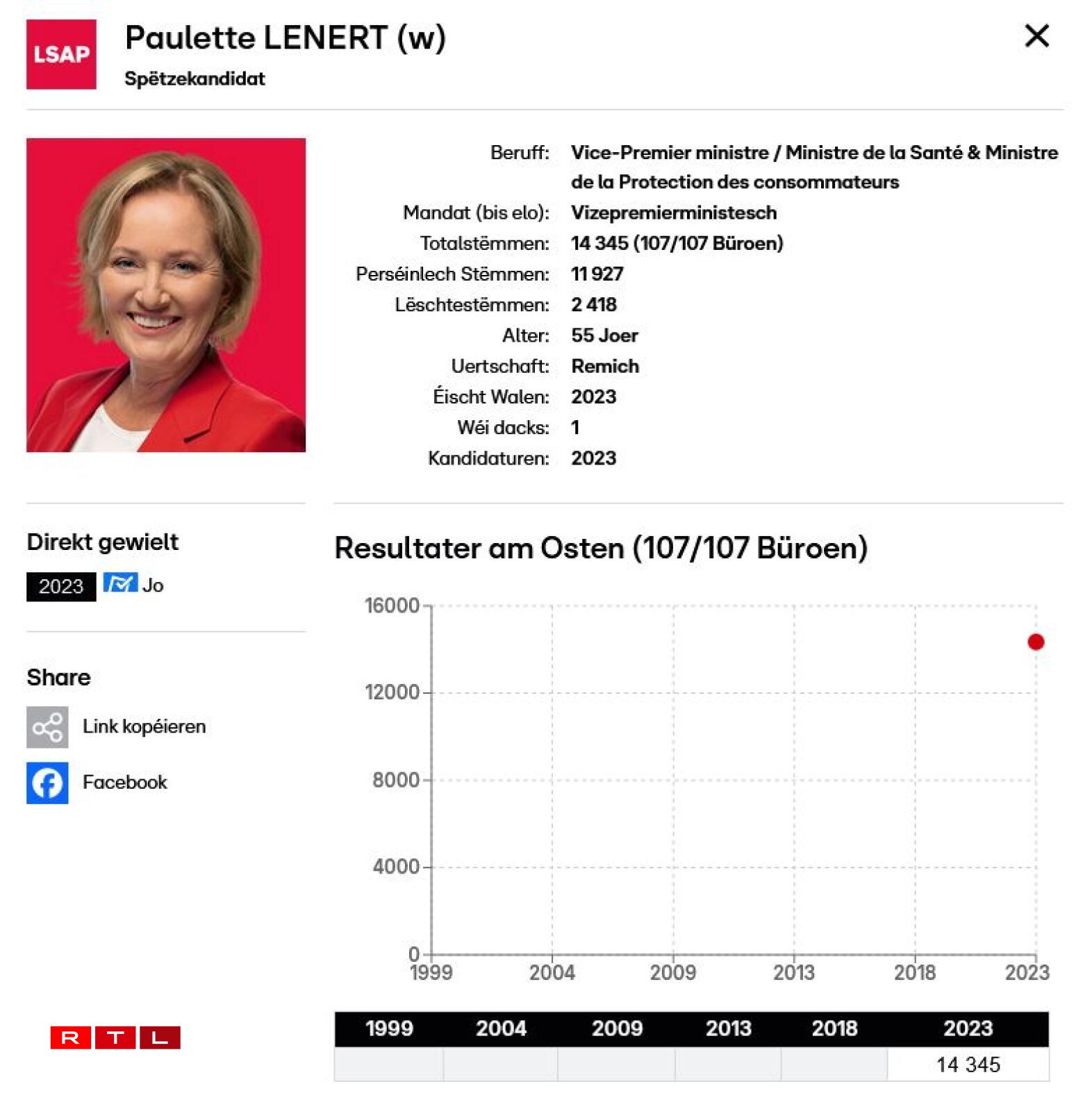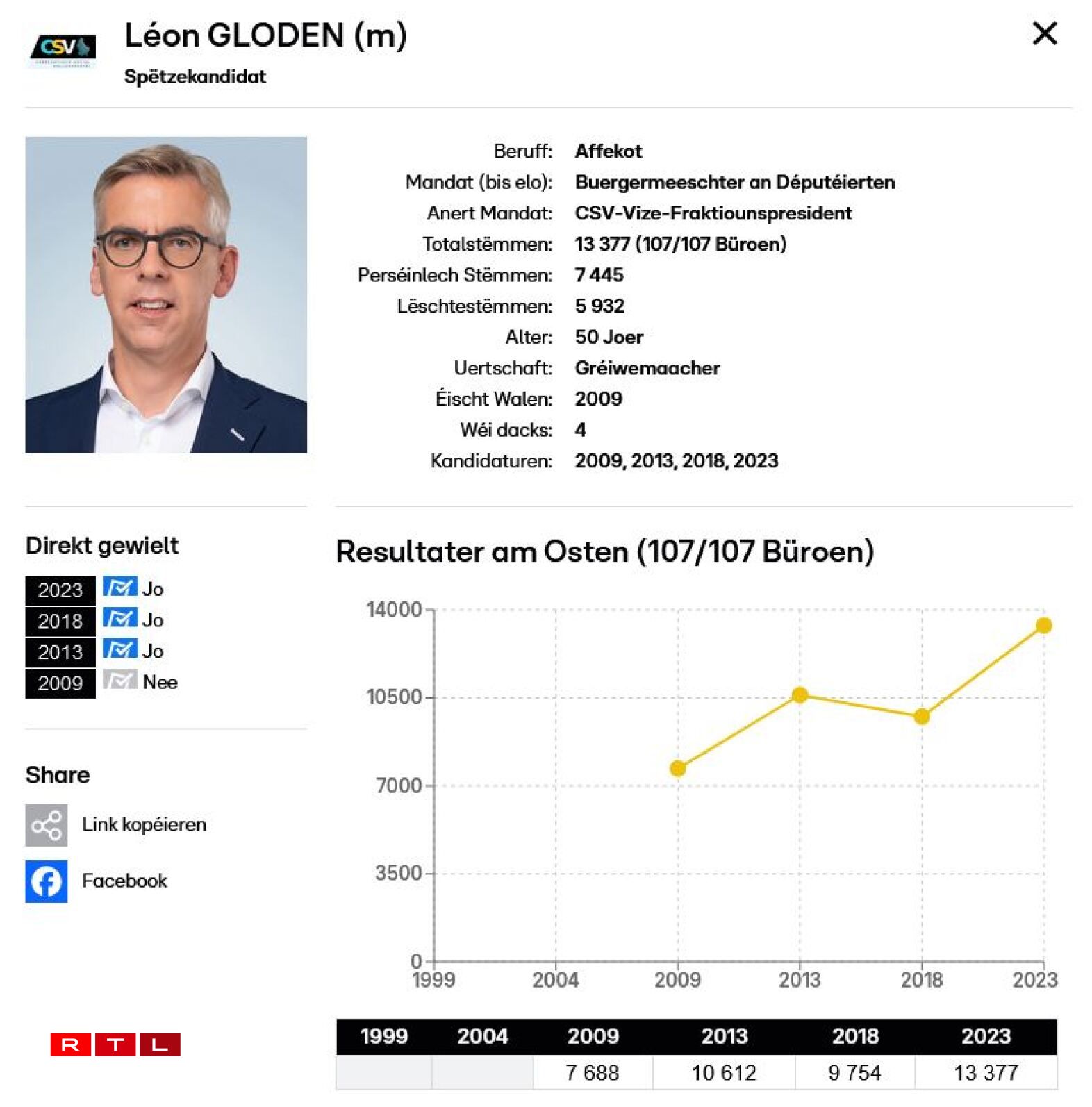 Finally in the East, with or without her party votes, the LSAP’s lead candidate Paulette Lenert comes out on top with 11,927 personal votes. She is followed by Lex Dells from the DP, who would steal the second spot from Léon Gloden (CSV), who received the third most personal votes, but achieved second place with party votes. Rounding out the top 5 of most personal votes in the East are Carole Hartmann (DP) and Max Hengel (CSV).