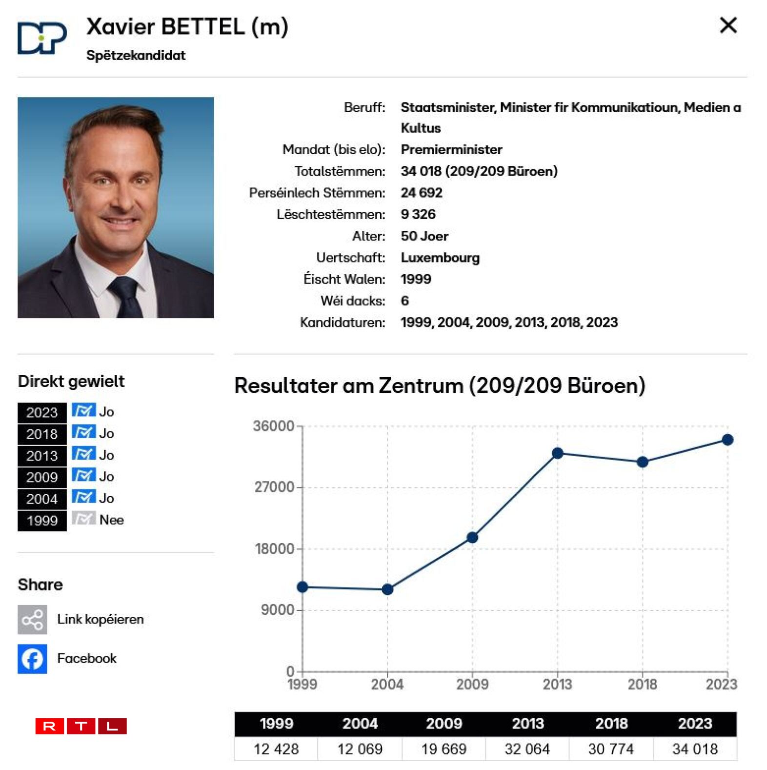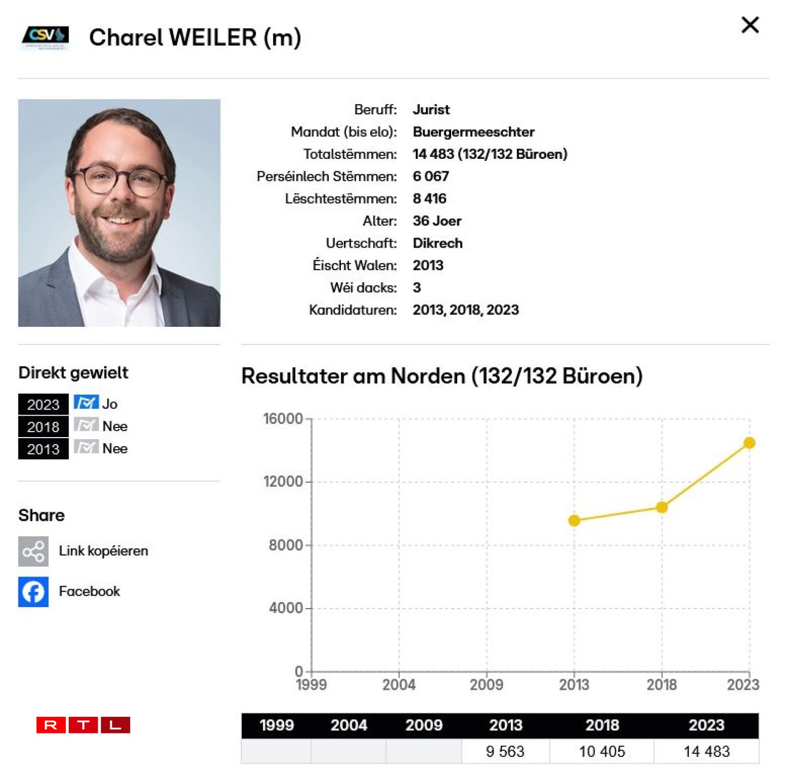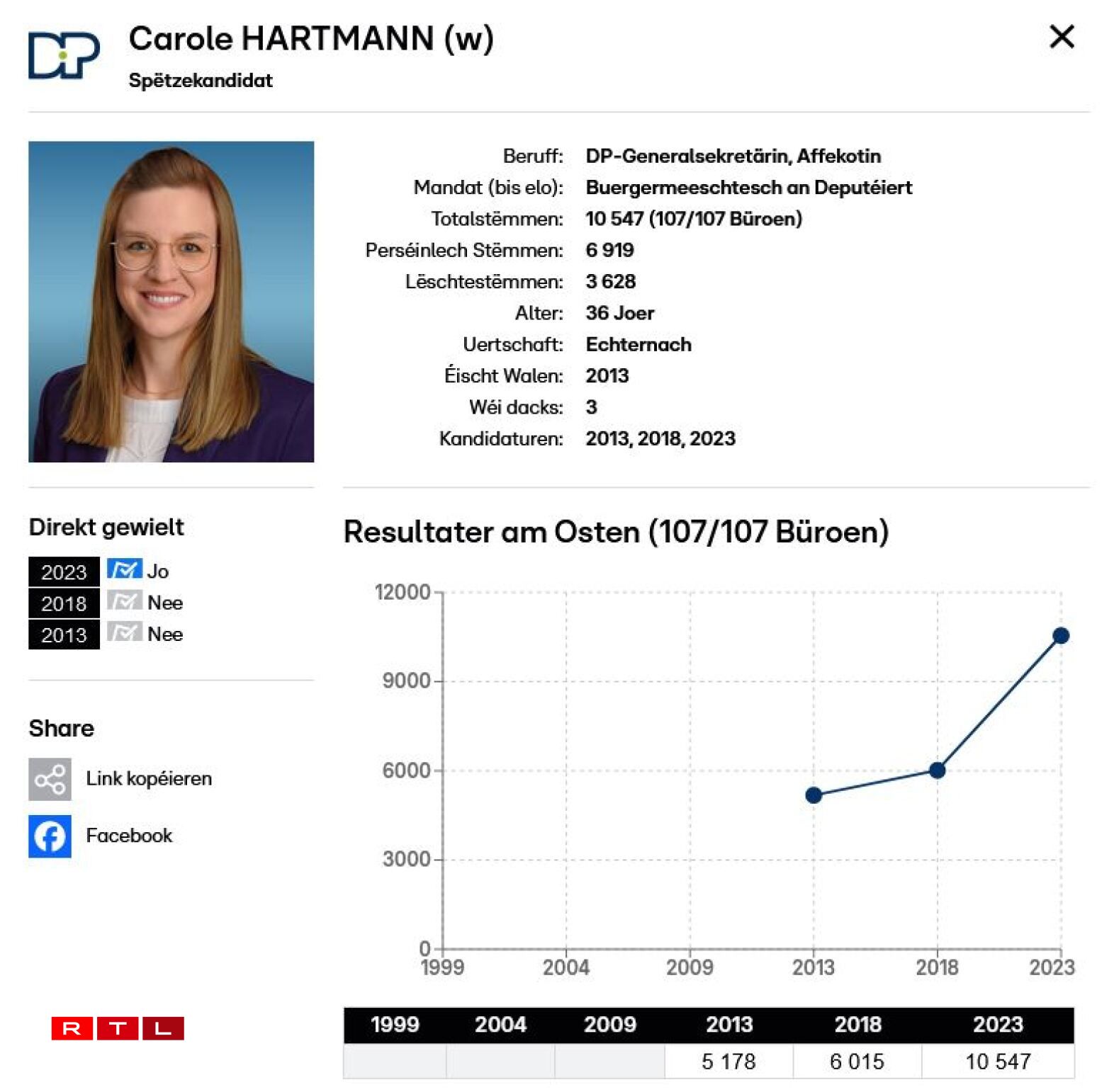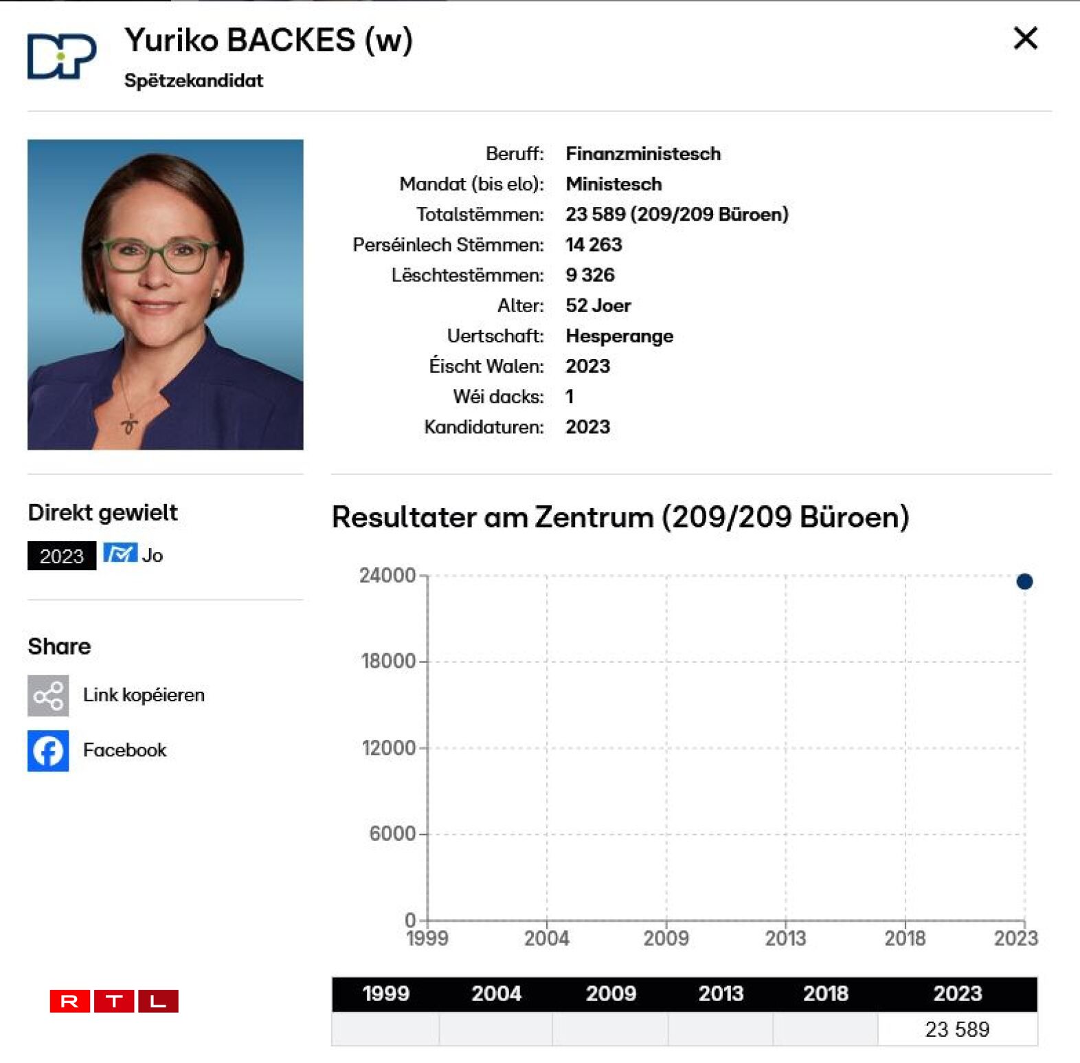 Finally in the East, with or without her party votes, the LSAP’s lead candidate Paulette Lenert comes out on top with 11,927 personal votes. She is followed by Lex Dells from the DP, who would steal the second spot from Léon Gloden (CSV), who received the third most personal votes, but achieved second place with party votes. Rounding out the top 5 of most personal votes in the East are Carole Hartmann (DP) and Max Hengel (CSV).