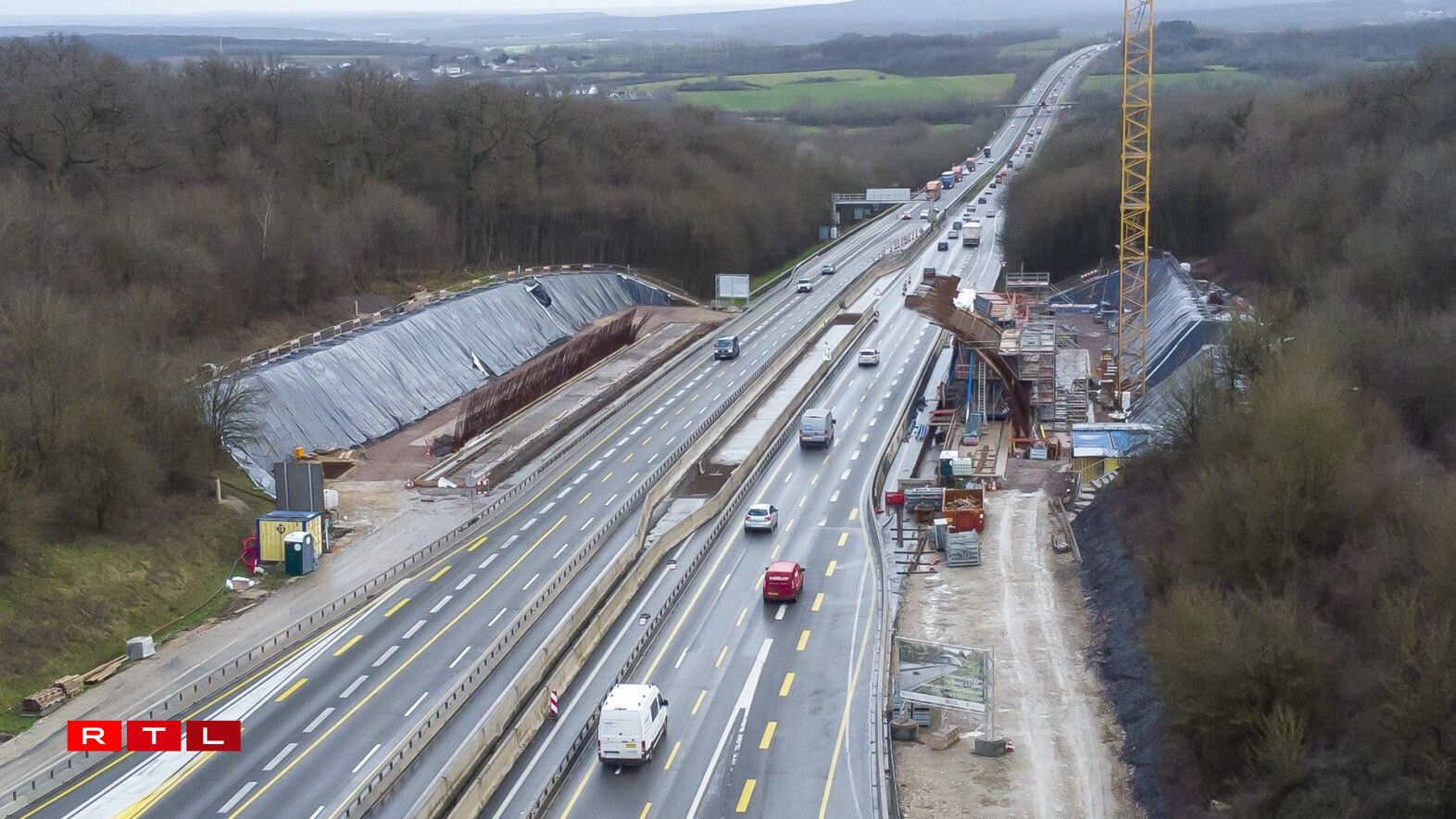 Slowly, the curve of the future wildlife bridge is taking shape on the edge of the A3 in the direction Luxembourg-France, right on the border.