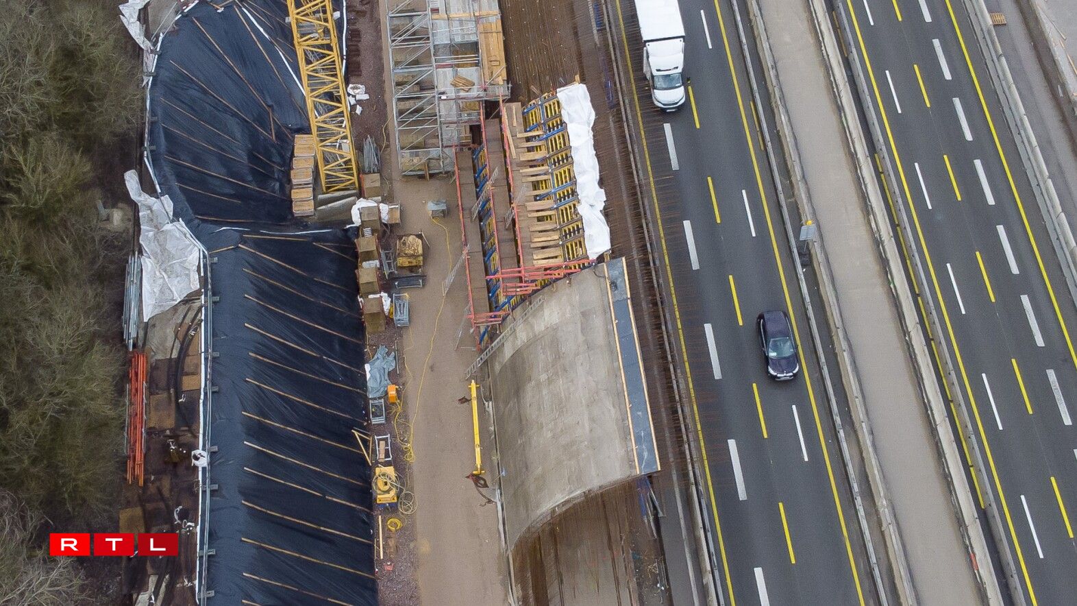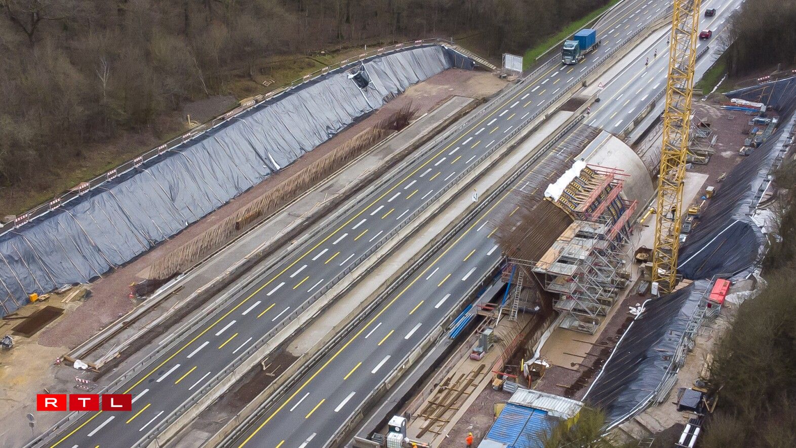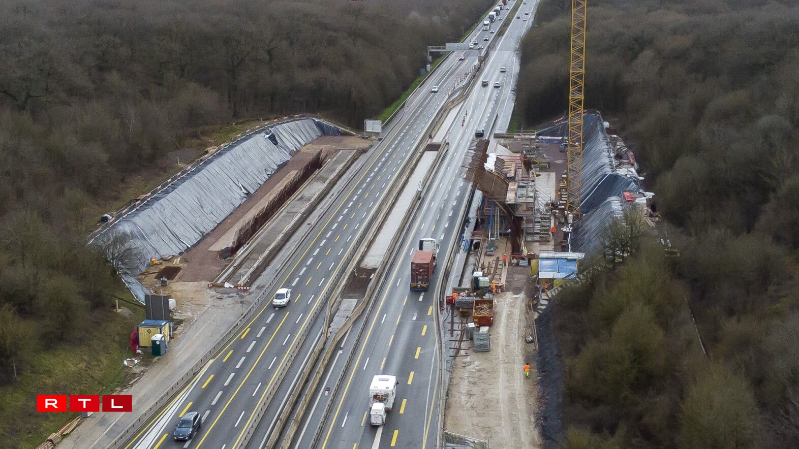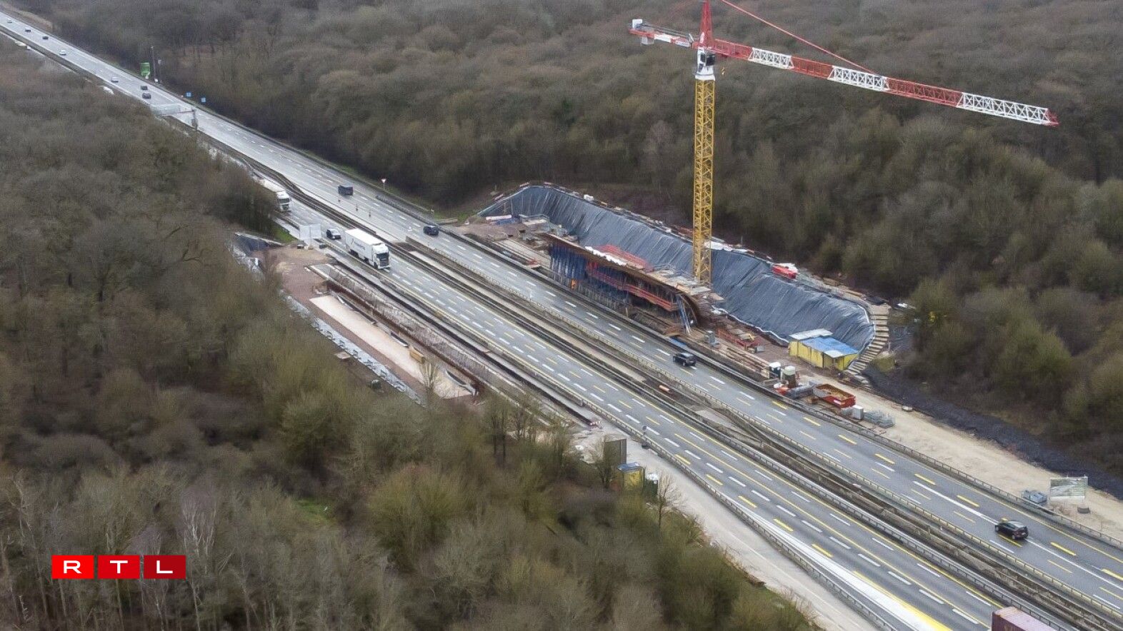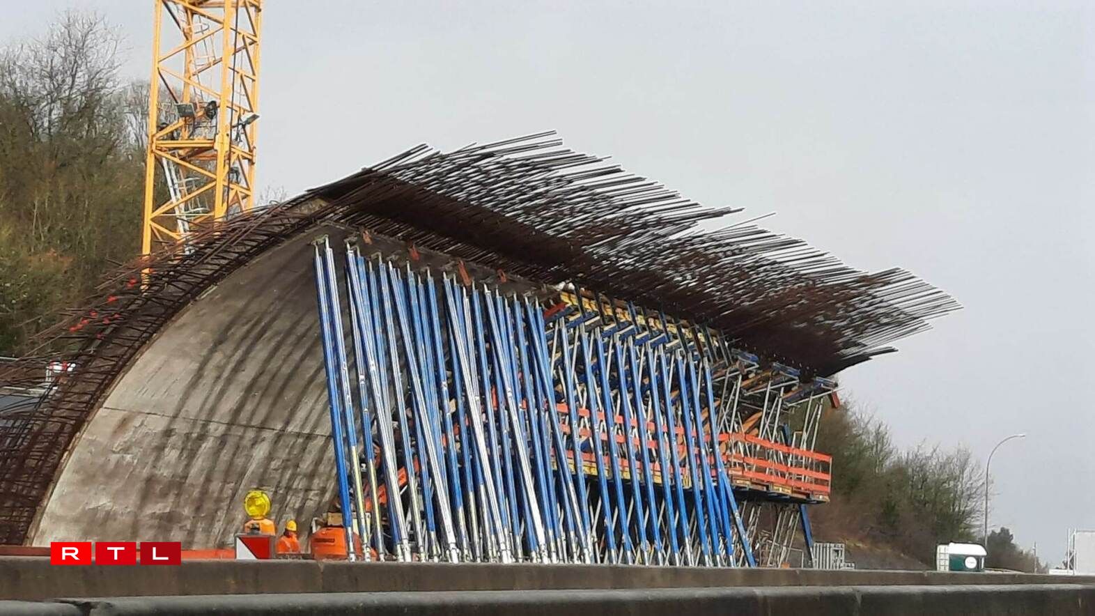 On Saturday, construction workers began installing the second of five sections that will carry the weight of the 67-metre long and 40-metre wide vault over the motorway. In a few weeks, the operation will be repeated on the other side of the motorway towards Luxembourg.
