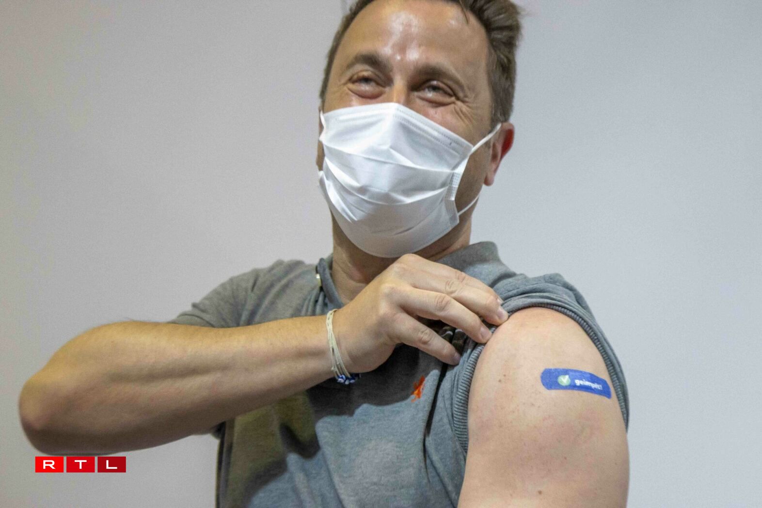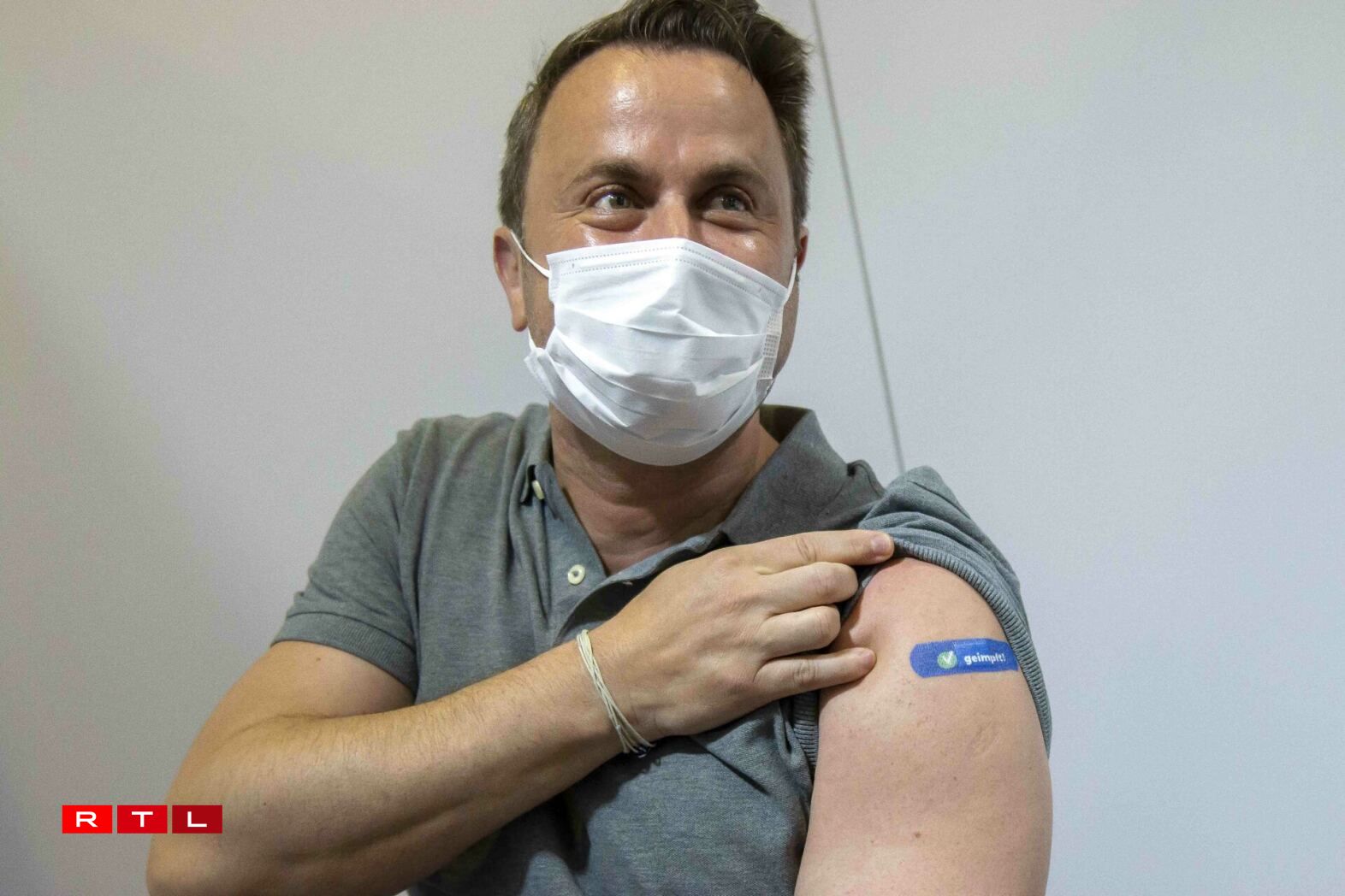 Pictures show a clearly delighted Bettel proudly showing off his ‘vaccinated’ plaster on his upper left arm.