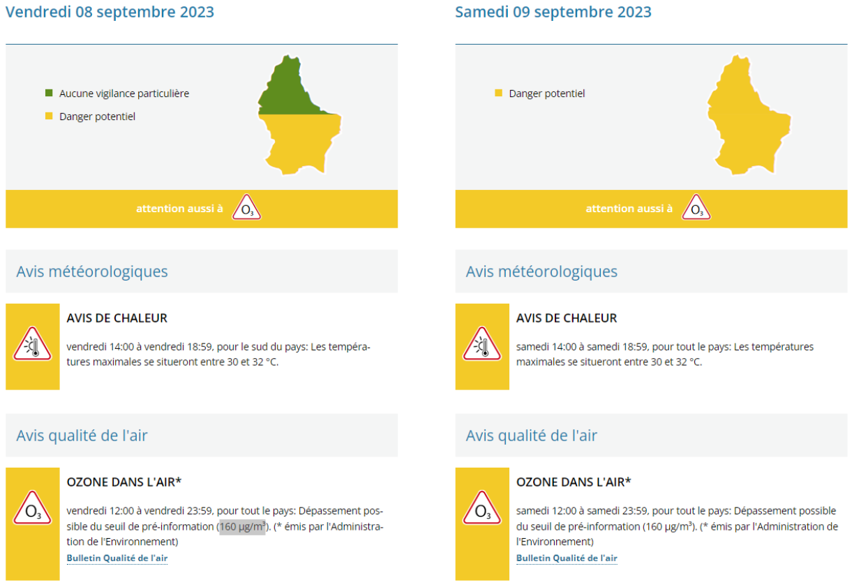 The national weather agency warns of very high temperatures throughout the whole country on Saturday afternoon from 2 to 7 pm.