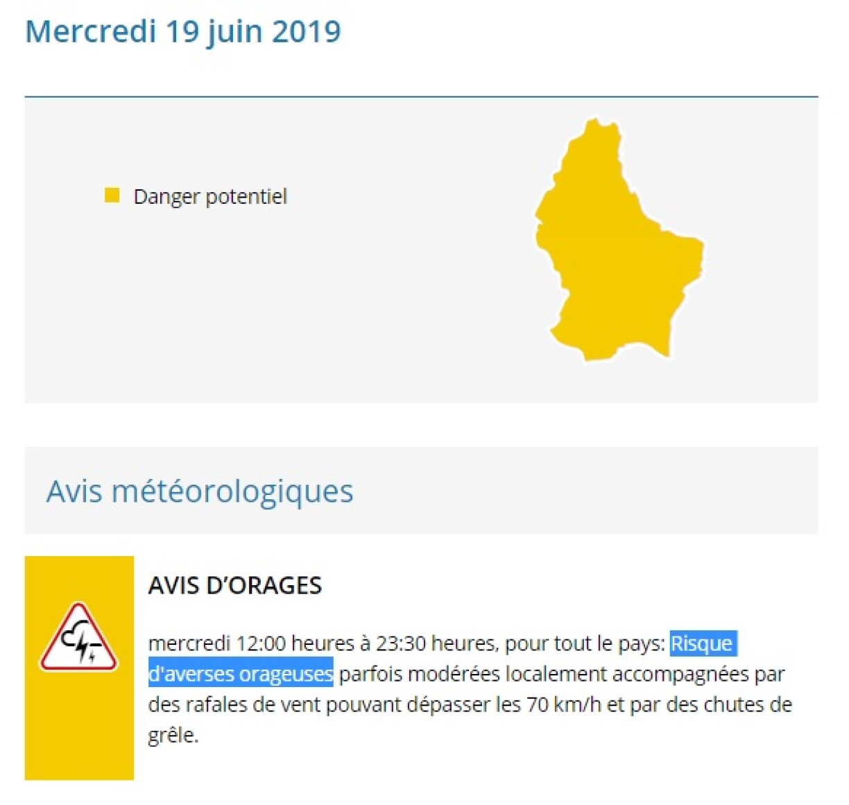 On Wednesday morning, the weather service announced that a yellow alert would take place on Wednesday afternoon.