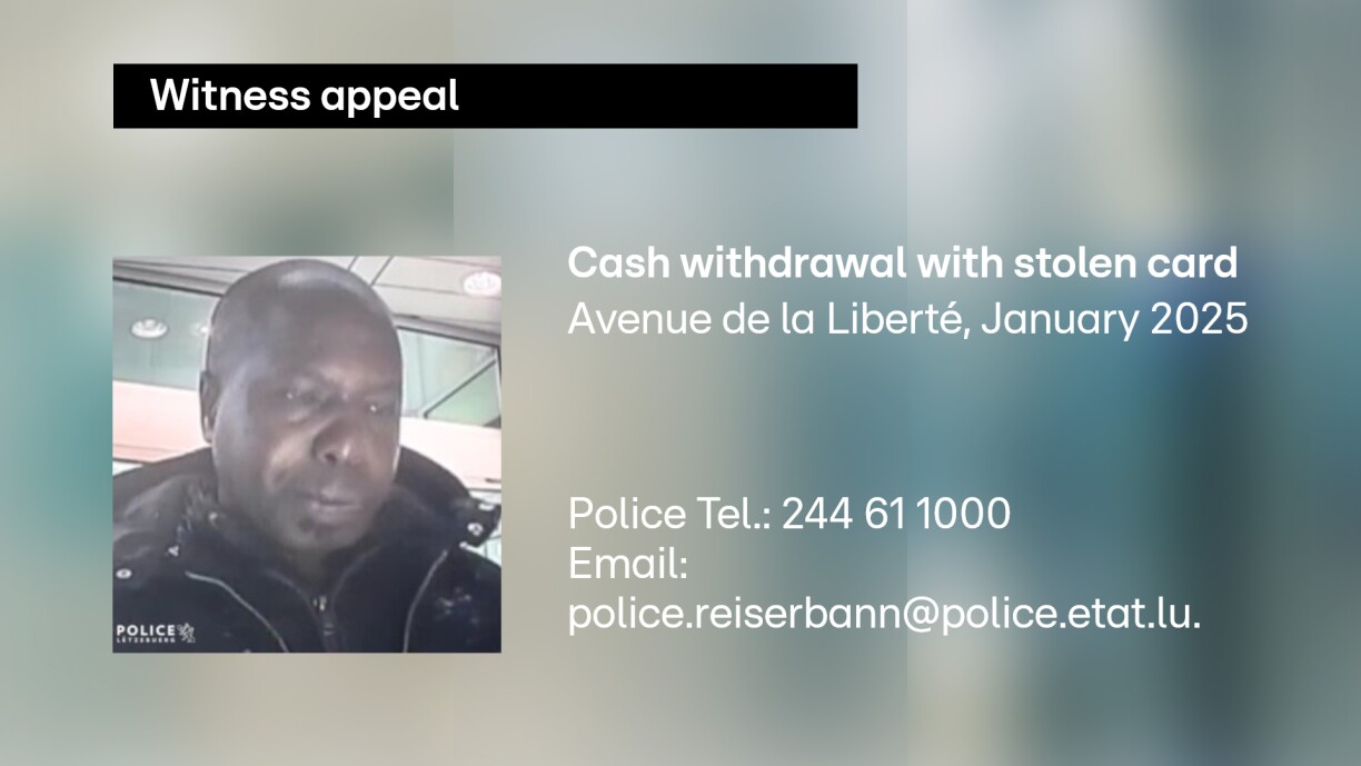 Police have issued an appeal for witnesses and information regarding a man suspected of using a stolen credit card to withdraw cash at an ATM in Luxembourg City just over a year ago.