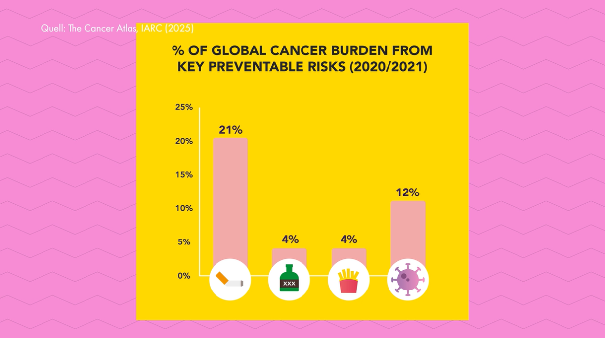 Share of global cancer burden from key preventable risks. Source: Cancer Atlas (2025)