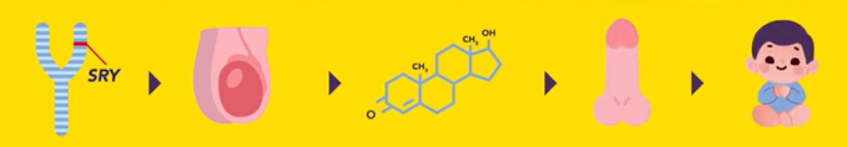 • SRY gene → testicular tissue → testosterone → scrotum and penis = male