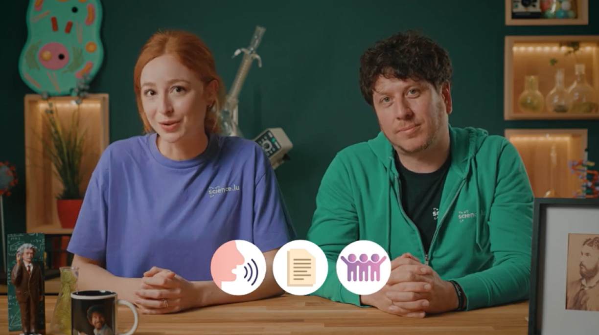 This episode of Ziel mir keng! was presented by Lucie Zeches (on the left) and Jean-Paul Bertemes (on the right) from the Luxembourg National Research Fund (FNR).
