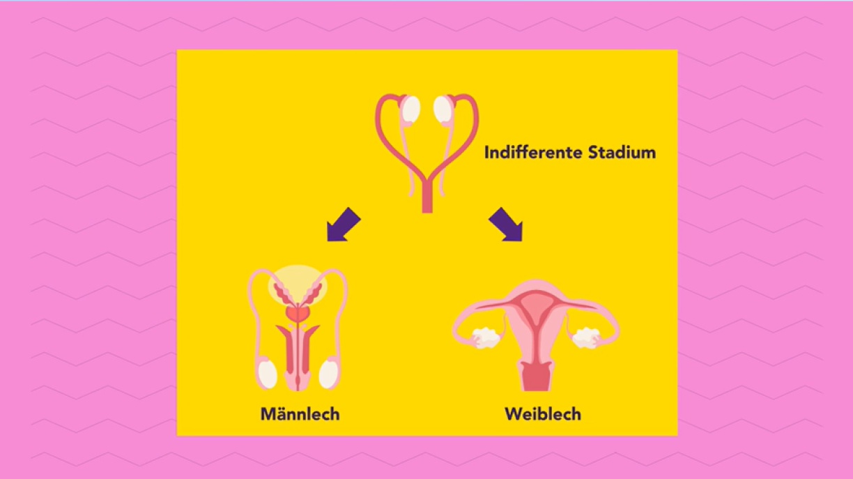 This is where a specific gene comes into play – the SRY gene, which is typically found on the Y chromosome (as you may recall,XX equals woman, XY equals man). So, this gene usually appears only in men. It causes the sex glands to develop into testicles. The testicular tissue then produces testosterone. This testosterone drives scrotum and penis development. Without the SRY gene, the glands form ovaries instead. Because there is also no testosterone, the vagina and vulva develop afterwards.
