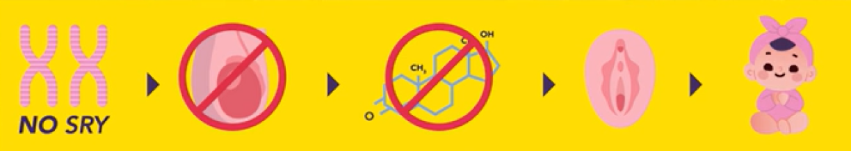 • No SRY gene → no testicular tissue → no testosterone → vagina and vulva = female.