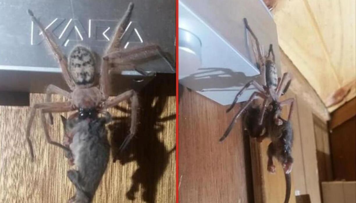 Justine Latton and her husband were enjoying some time in Tasmania’s Mount Field National Park over the weekend when they saw a huge hunstman spider devouring a possum.