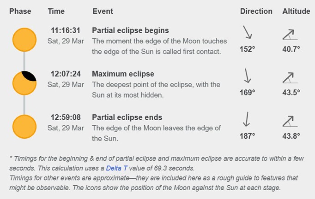 The event will be visible across various regions, including Europe, western Africa, eastern Canada, and the northeastern United States. In Luxembourg, it will begin around 11.16am to reach its peak at around 12.07pm. The majestic spectacle will then gradually fade until 12.59pm. At its highest, approximately 19.6% of the Sun will be covered by the Moon, creating a noticeable celestial event.