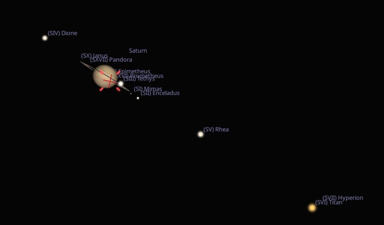 Meanwhile, Saturn lies lower in the southwest twilight. At the start of the month, it still sits about a third of the way up the sky after sunset, showing itself as a pale steady white to the naked eye. Saturn is always a delightful target, especially through a small telescope, though its rings are now nearly edge-on and hard to spot.