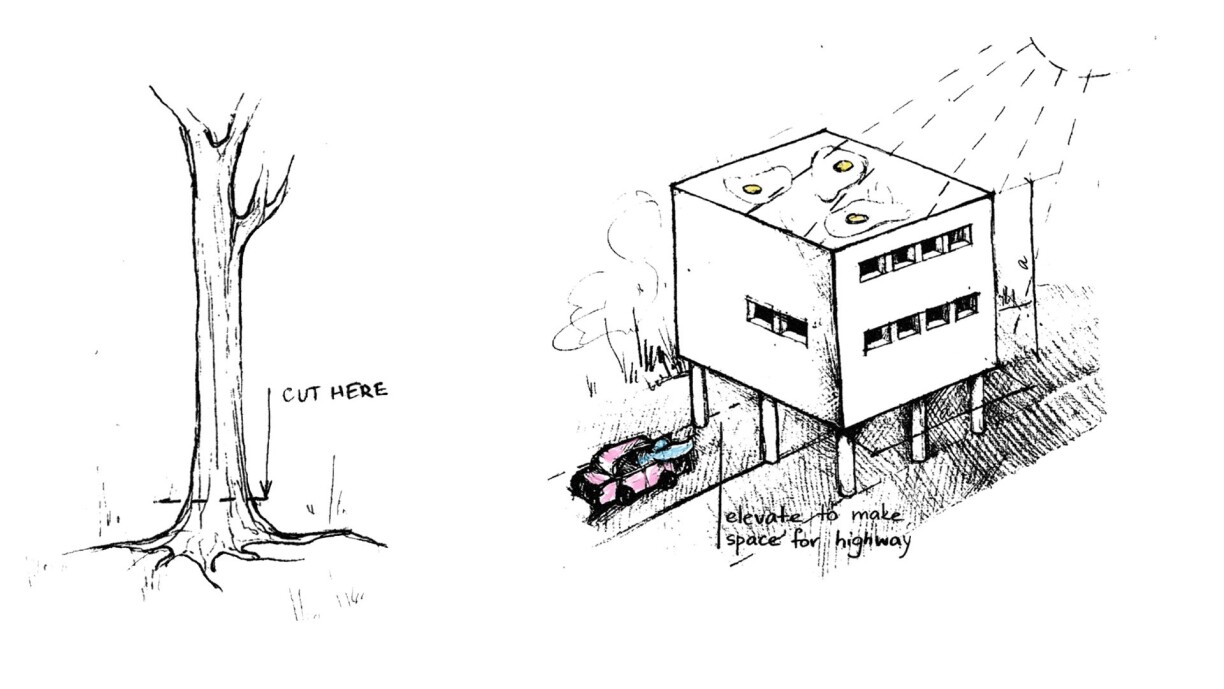 Start by chopping down the tree; it will not be needed. Branches and leaves serve no immediately discernible purpose and hinder access to light. Wood is, furthermore, an outdated material, as is everything reminiscent of nature, including nature itself. Seal the ground on which the tree used to stand with a layer of tar. We shall call this the plan Voiseau.