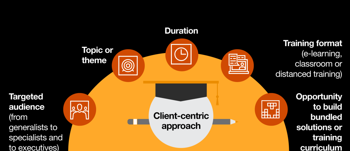 As the training activity results from the ongoing interactions with clients, the value proposition is designed to easily be adapted to specific client needs. This approach is of high interest to clients for all the audience types including the C-levels, Executives and Board members. Trainings are proposed in the form of classroom type or live webinar, as well as e-learnings. In addition, inter-company trainings (open training courses) are available through the website and open to individual registrations.