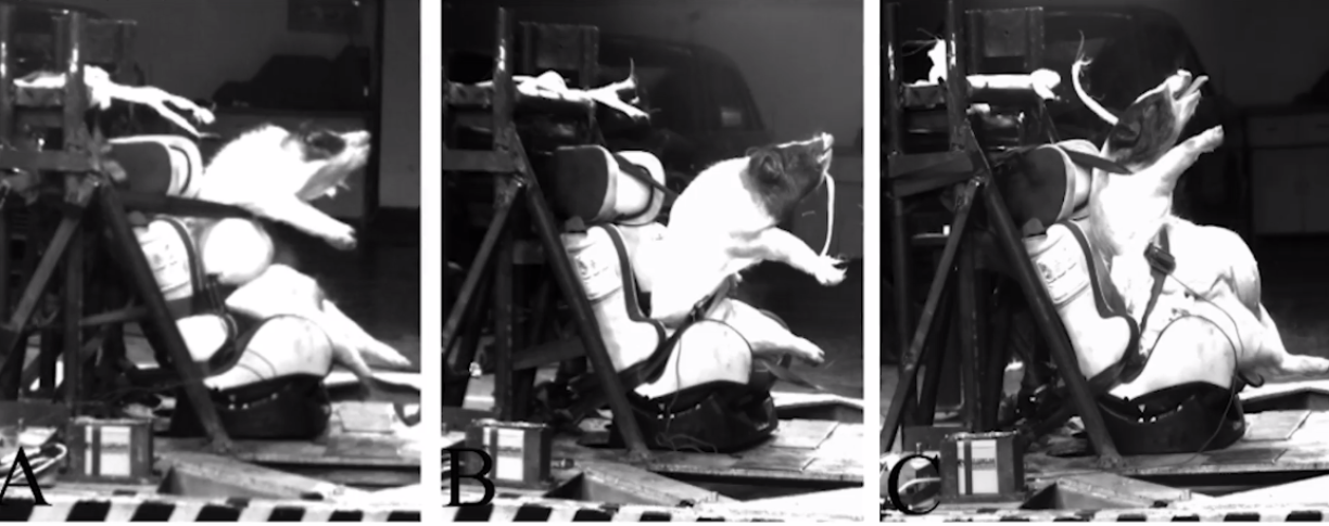 The piglets were placed in children seats attached to crash test sleds. Some of the piglets were ripped out of the seats in the collision and half of the young pigs immediately died upon impact (between 30 and 50 km/h). The others died hours later. The autopsies later revealed that that the lungs, spleens, and livers were damaged in the collision.