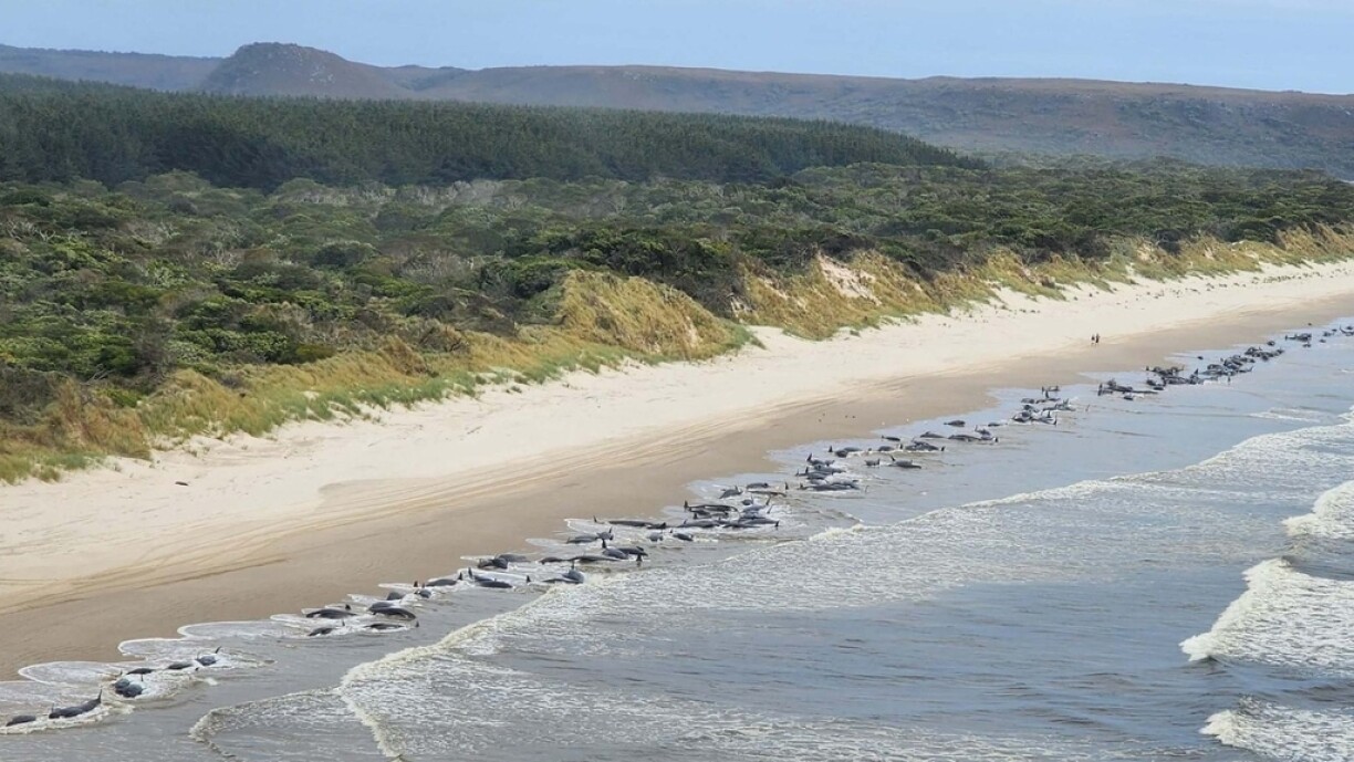 Aerial images showed a devastating scene of dozens of black glossy mammals strewn along a stretch of beach where the frigid southern ocean meets the sand.