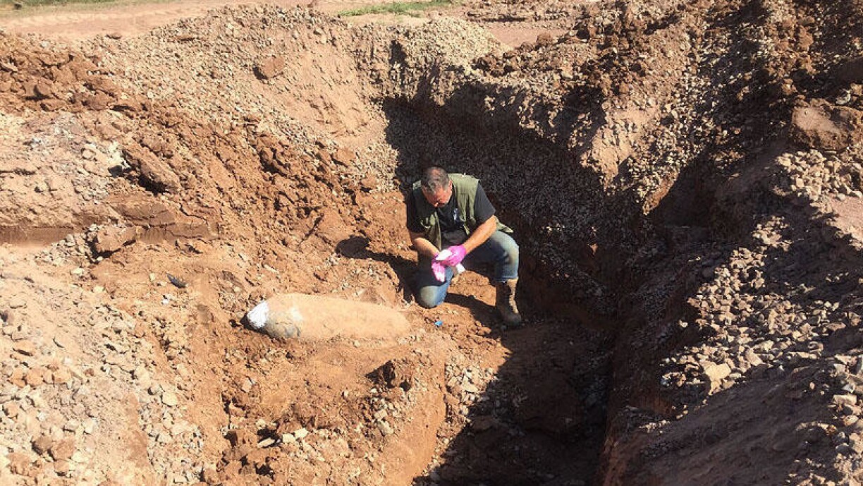 According to the bomb disposal team’s information, there is currently no risk that the bomb will explode. The bomb was found at a depth of 1.20 metres and was discovered during survey works ahead of a construction site for a new sports hall.