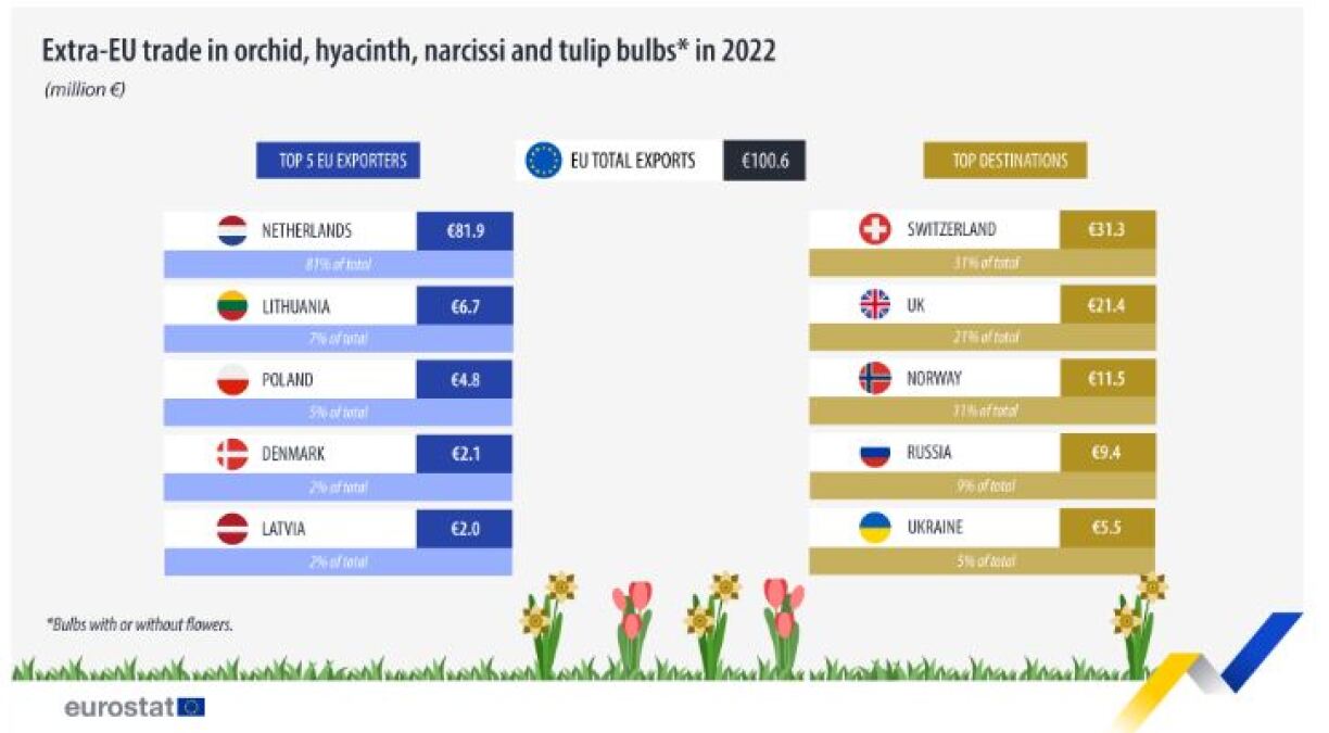 Last year, the European Union exported €100.6 million in hyacinth, orchid, narcissi and tulip bulbs. In the same year, the EU imported €30.9 million worth of the same flowers.