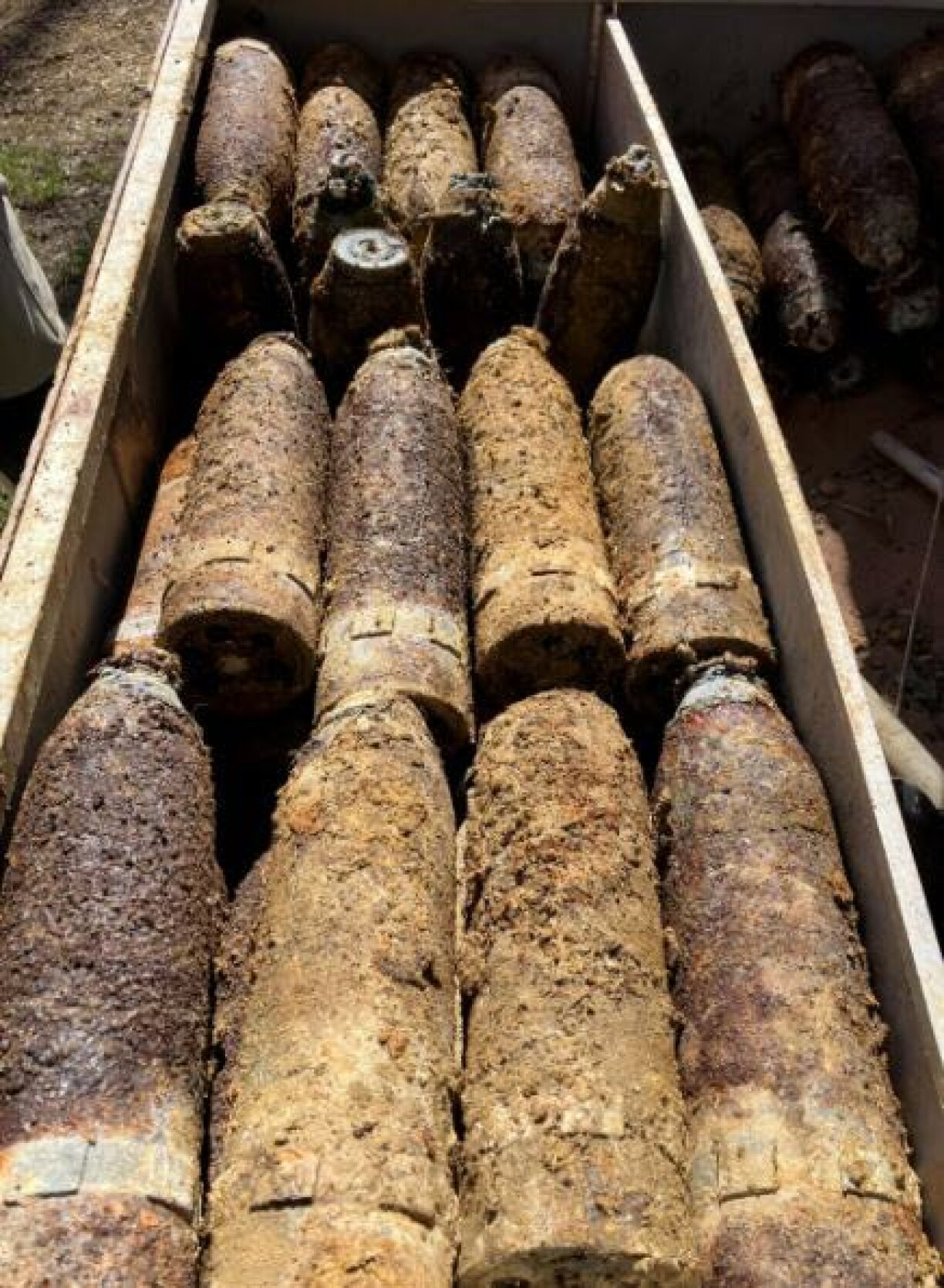 Le Républicain Lorrain reports that it took two days for the deminers to safely extract the shells. The discovery appears to be a depot used by German troops during the First World War. Each warhead was calibrated for cannons and consisted of an explosive and a detonator.