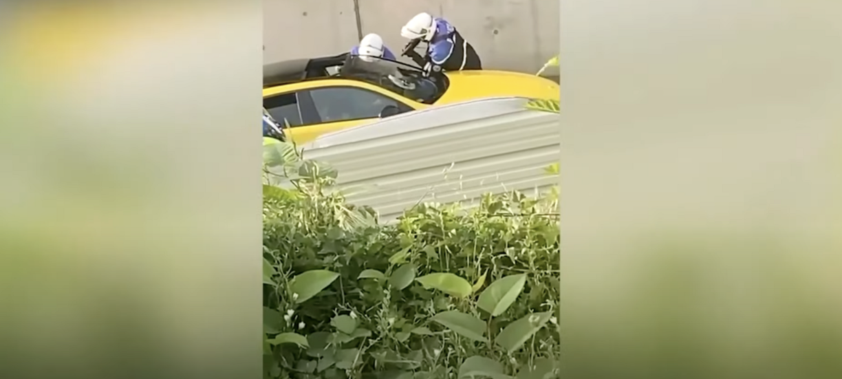 A video circulating on social media, authenticated by AFP, shows two police officers trying to stop the vehicle and one pointing his weapon at the driver through the window and firing at point blank when he drives off.