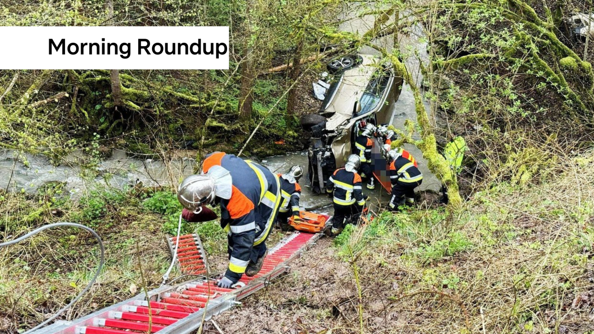 RAVINE PLUNGE - A traffic accident occurred on Wednesday morning along the CR145, culminating in a harrowing plunge for a motorist into the depths of a ravine. Details from the Grand Ducal Fire and Rescue Corp reveal that the vehicle veered off the CR145 towards Greiveldange at around 8.40am, careening down an embankment for a staggering 20 metres before coming to a halt in a nearby stream. Emergency services deployed a team of 20 firefighters, who worked diligently to extricate the driver from the vehicle. The driver, who sustained only minor injuries, was successfully rescued and transported back to the road using an evacuation tray.