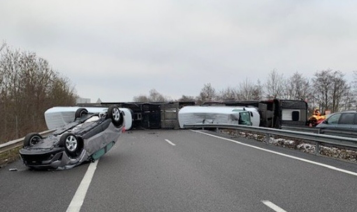 According to the newspaper Dernières Nouvelles d’Alsace, three people sustained light injuries: the two men in the lorry, aged 38 and 53 respectively, and the car driver, a 24 year old woman.