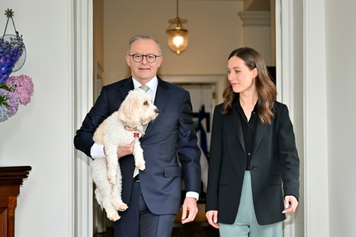 To lighten up his regular appearances on Australian breakfast television, Albanese often calls on his shaggy cavoodle “Toto”.