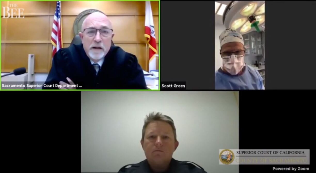 Green appeared before Sacramento Superior Court Commissioner Gary Link’s online courtroom while wearing his surgical garbs, reports The Sacramento Bee. The sounds of medical devices can be heard in the background.