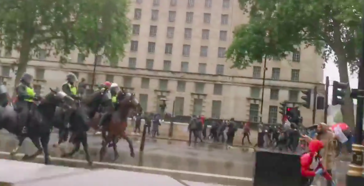 The Metropolitan Police confirmed that the policewoman was taken to hospital after her fall, as was the pedestrian. Although an overwhelming majority of protesters were peaceful, police said that 14 officers were injured as violence erupted around 7pm on Saturday evening.